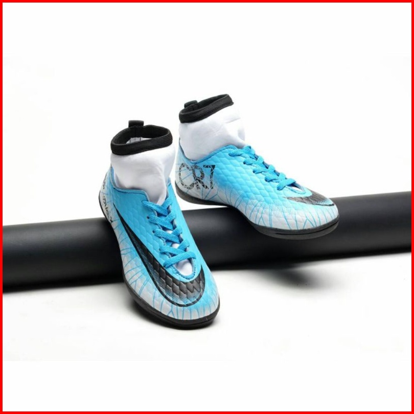 Sepatu Futsal Anak High Biru Puith List Hitam Baru