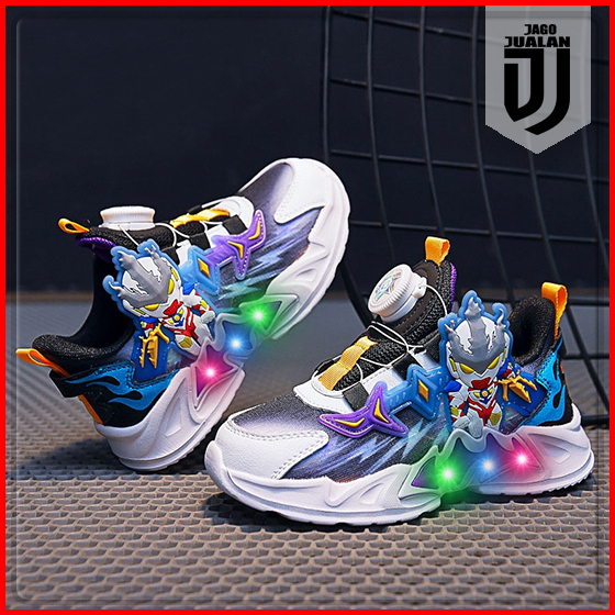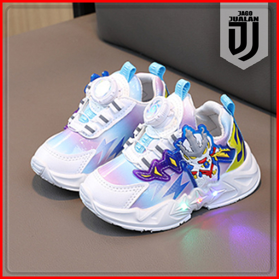 Sepatu Sneakers Superhero Lampu Led Anak Usia 1 2 3 4 5 6 Tahun Sepatu Kets Anak Laki Laki Sporty Model Tali Putar Sepat