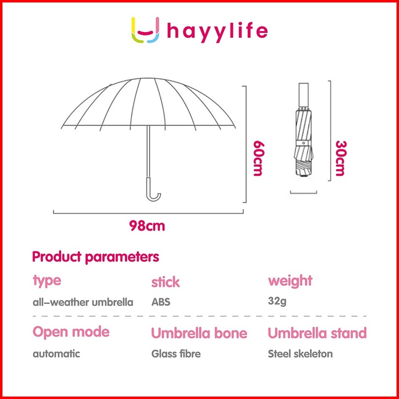 Hayylife Payung Dengan Hook Gantungan - Bahan Vinyl Perlindungan Uv Unisex Multifungsi Hl-agf587