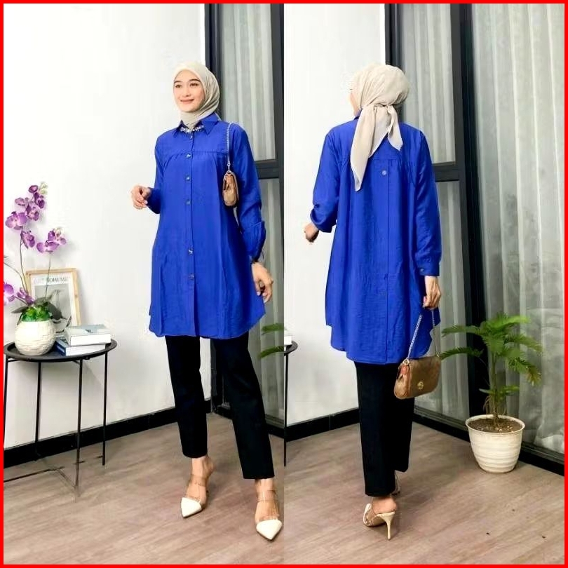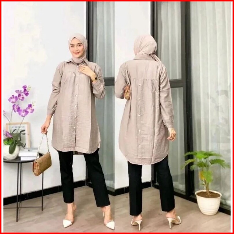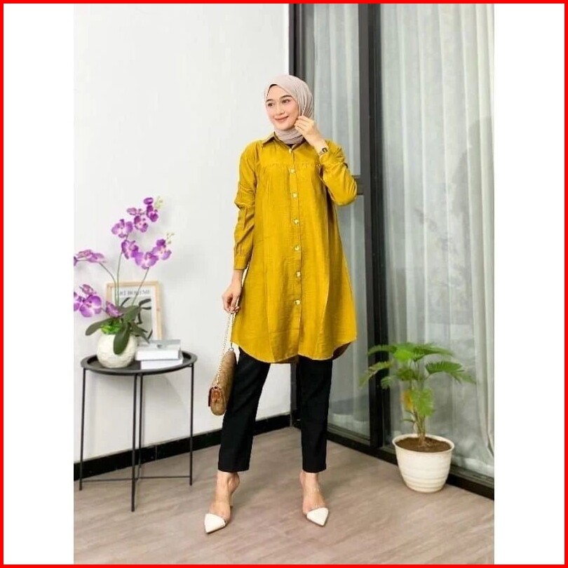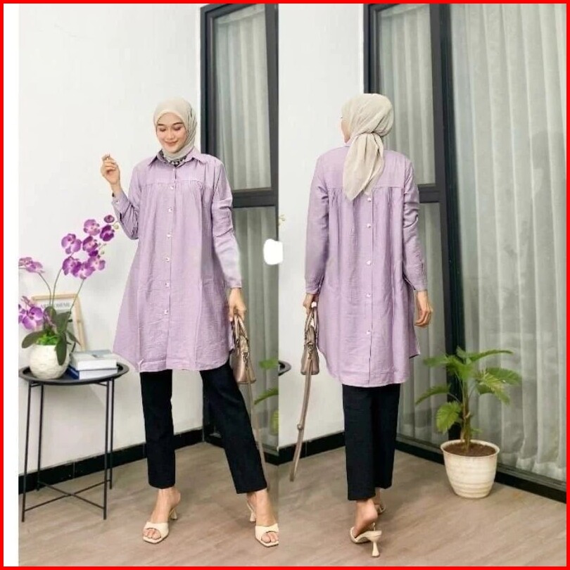 Zullfa Tunik Variasi Kancing Belakang Tunik Polo Linen Atasan Wanita