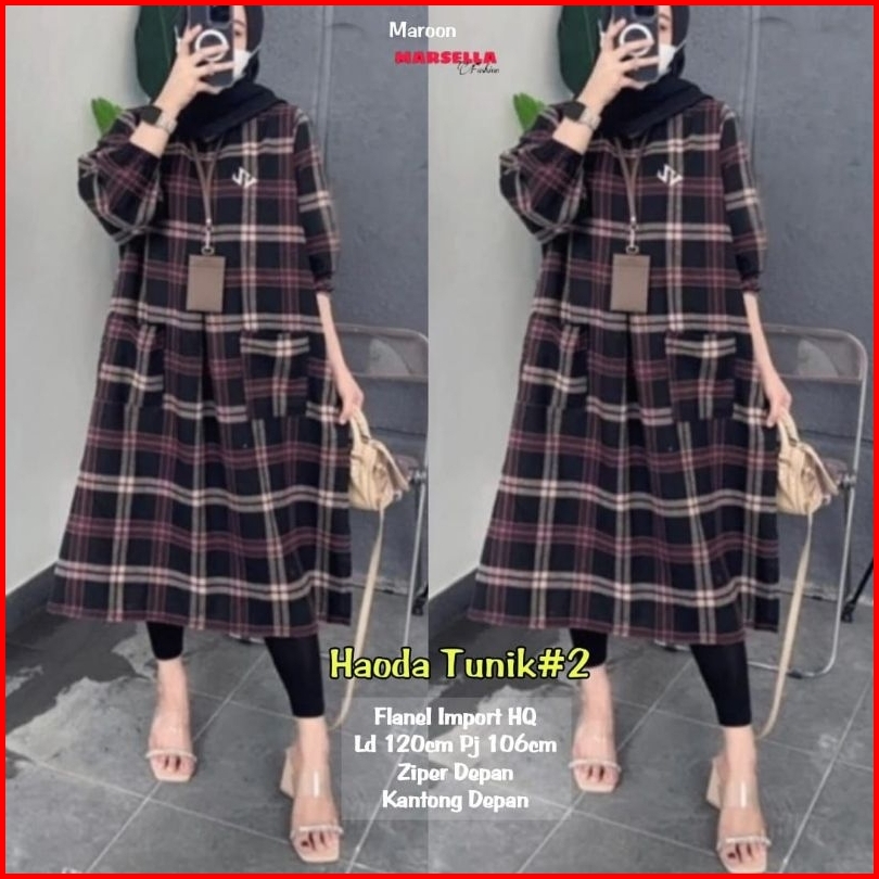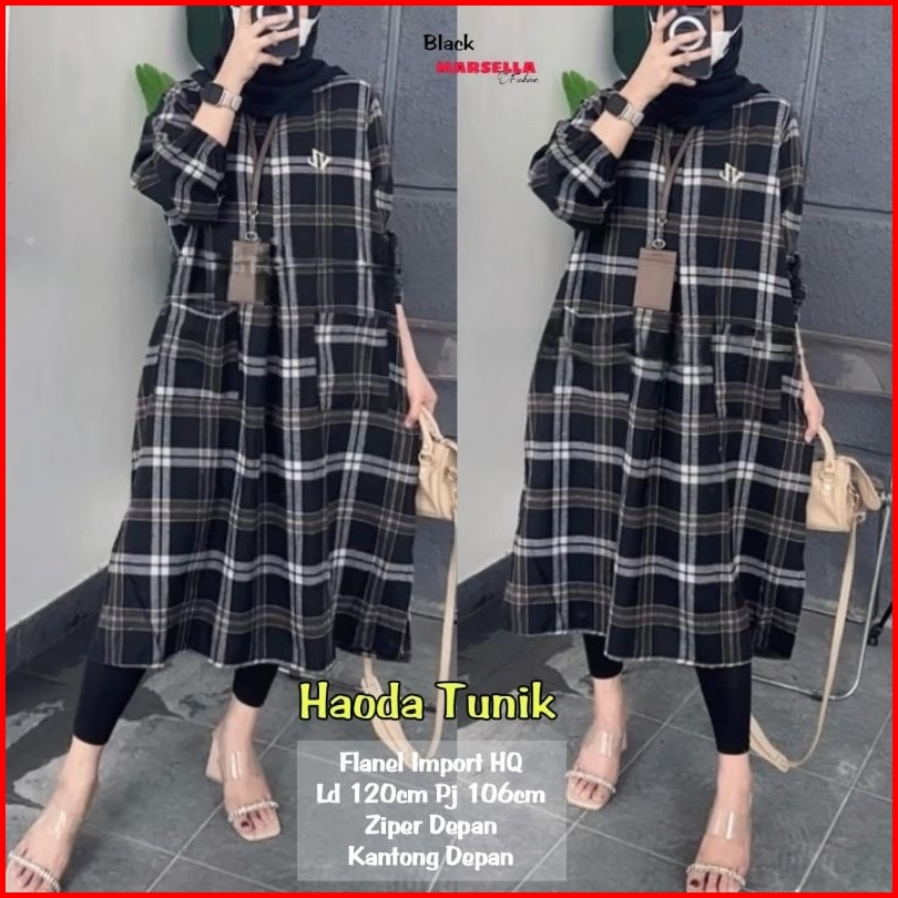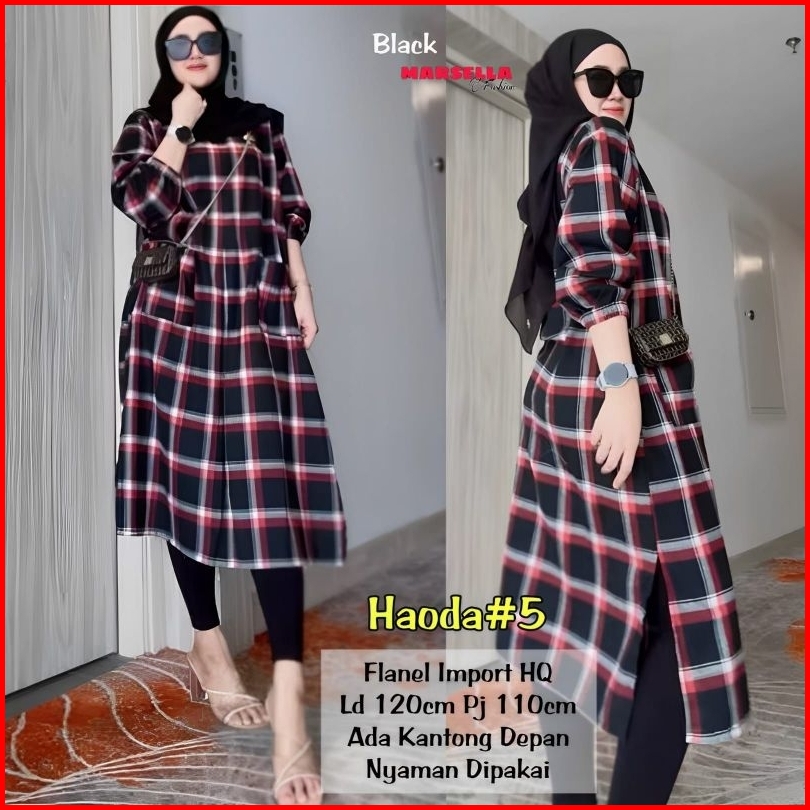 Selly Long Tunik Kotak Kotak Moca Hana Kemeja Tunik Kemeja Flanel Premium Tunik Muslim Baju Atasan Kekinian Flanel Impor