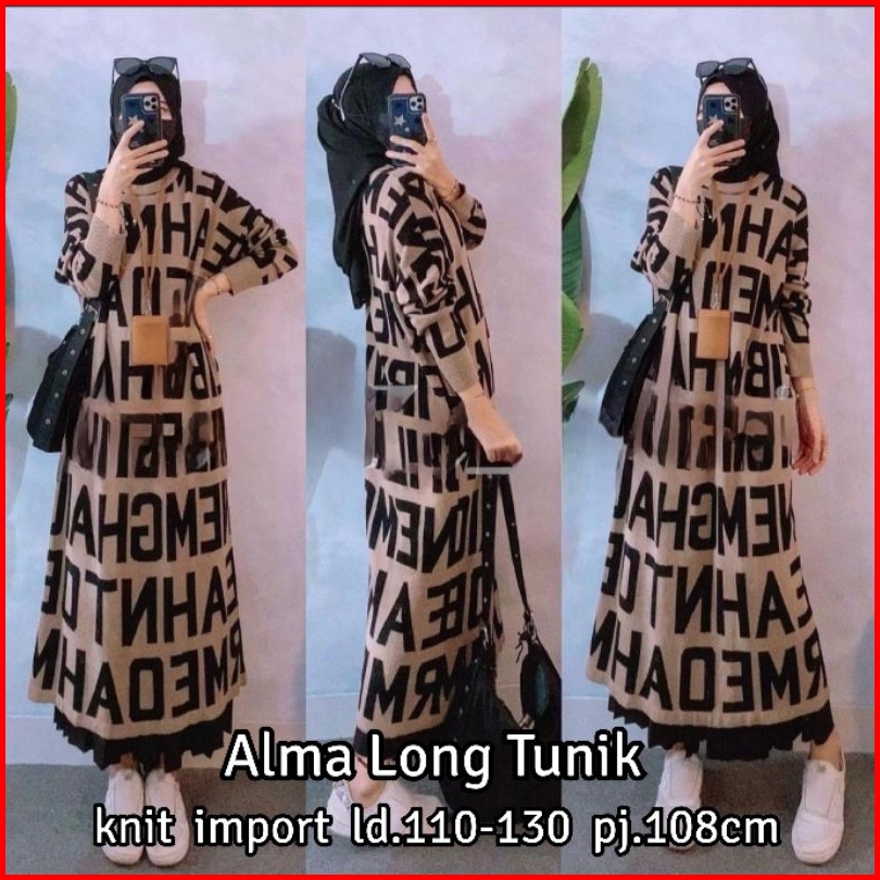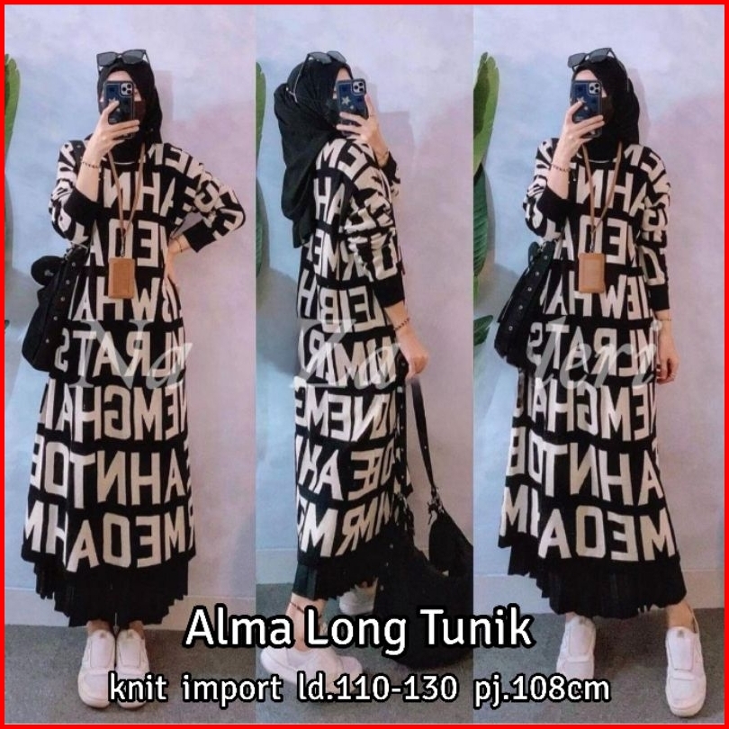 Long Tunik Rajut Import Terbaru Motif Abjad Huruf