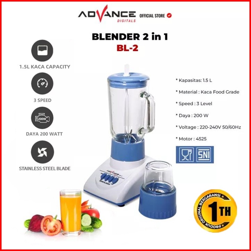 Garansi 1 Tahunadvance Bl-2 Blender Kaca Mixer Kecepatan Variabel Blender Juicing Cup
