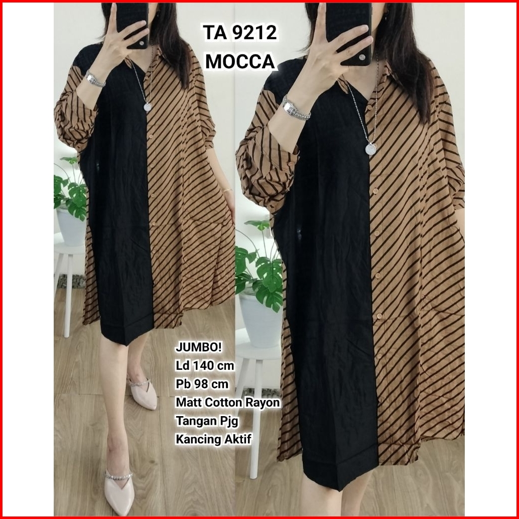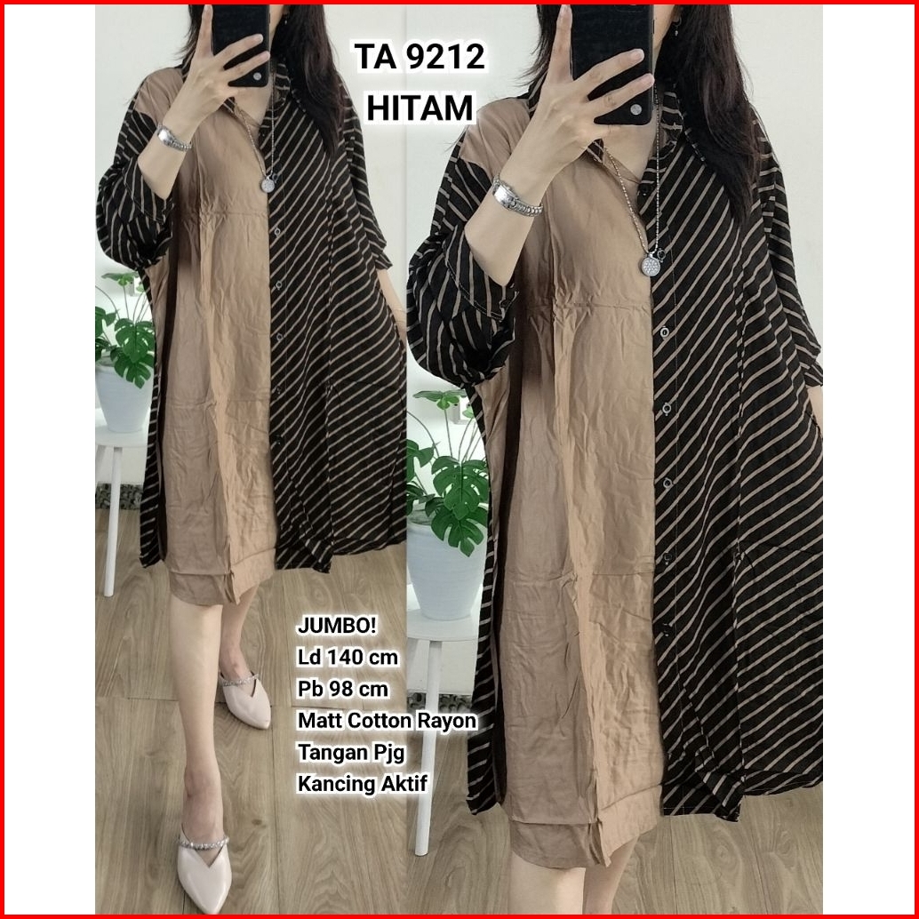 Tunik Jumbo Wanita Ld 140 Polos Kombinasi Salur Bahan Katun Rayon Ta 9212
