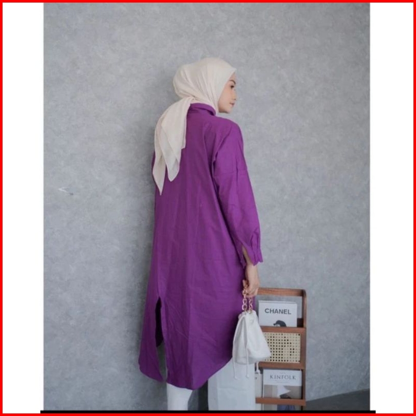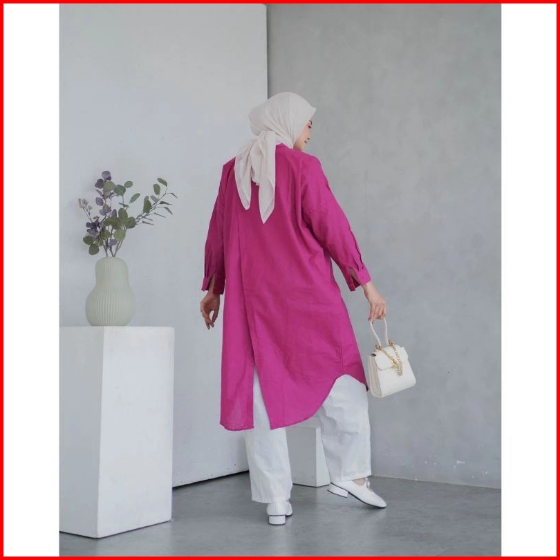 Atasan Wanita Kemeja Tunik Linen Dwyne Model Belah Belakang Oversize Edee Store