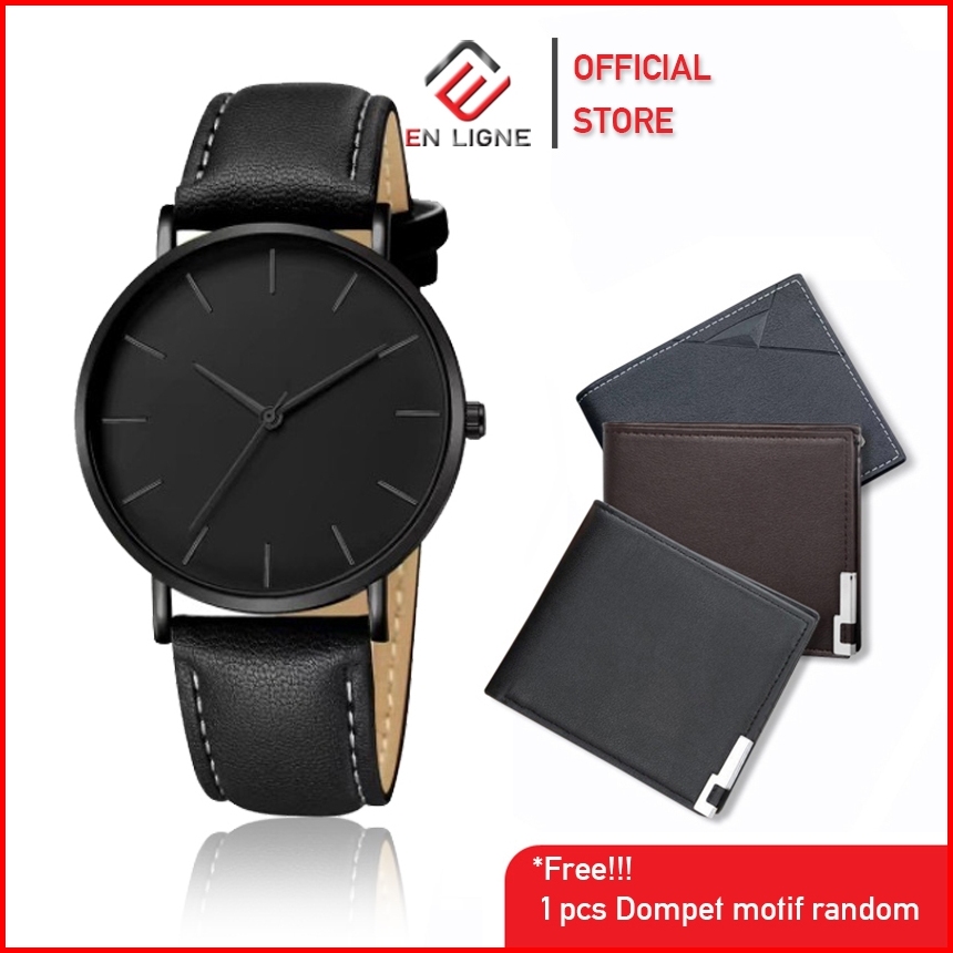 En Ligne - Jam Tangan Pria Set - Jam Tangan Gift - Jam Tangan Kado - Jam Tangan Dompet Set - Kado Ultah - Hampers