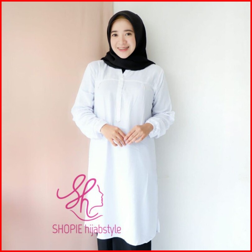 Tunik Polos Rayon White Wanita Terbaru Premium Kekinian Cocok Untuk Busui
