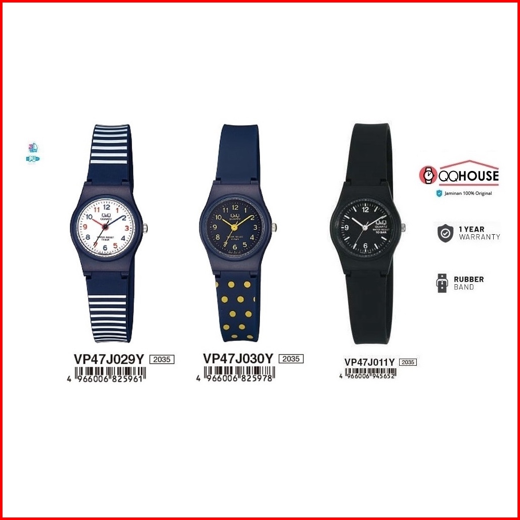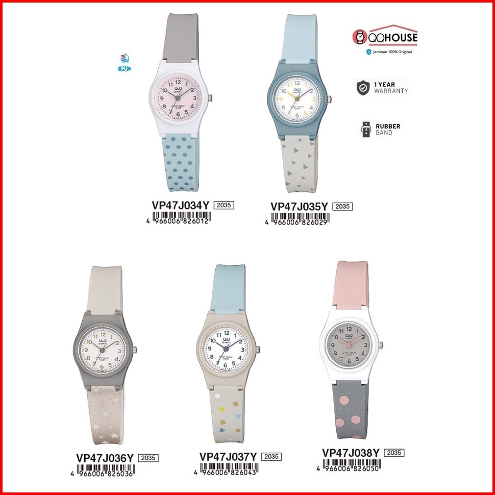 Q Q Qnq Qq Vp47 Vp47j Vp47j011 - 038 Vp47j029y - 038y Analog Watch Rubber Band Jam Tangan Wanita Tali Karet
