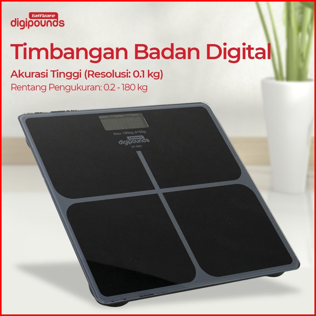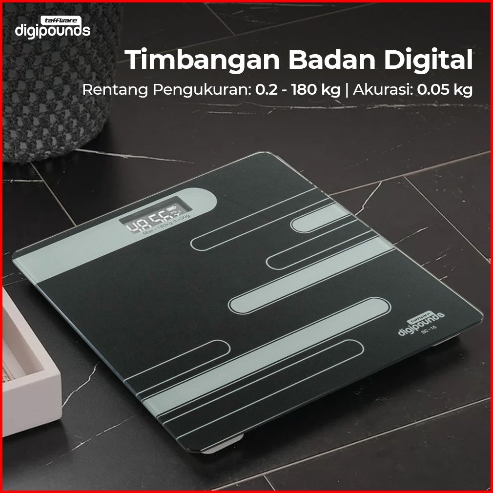 Taffware Digipounds Timbangan Badan Digital Temperature Battery Version 180 Kg - Black White