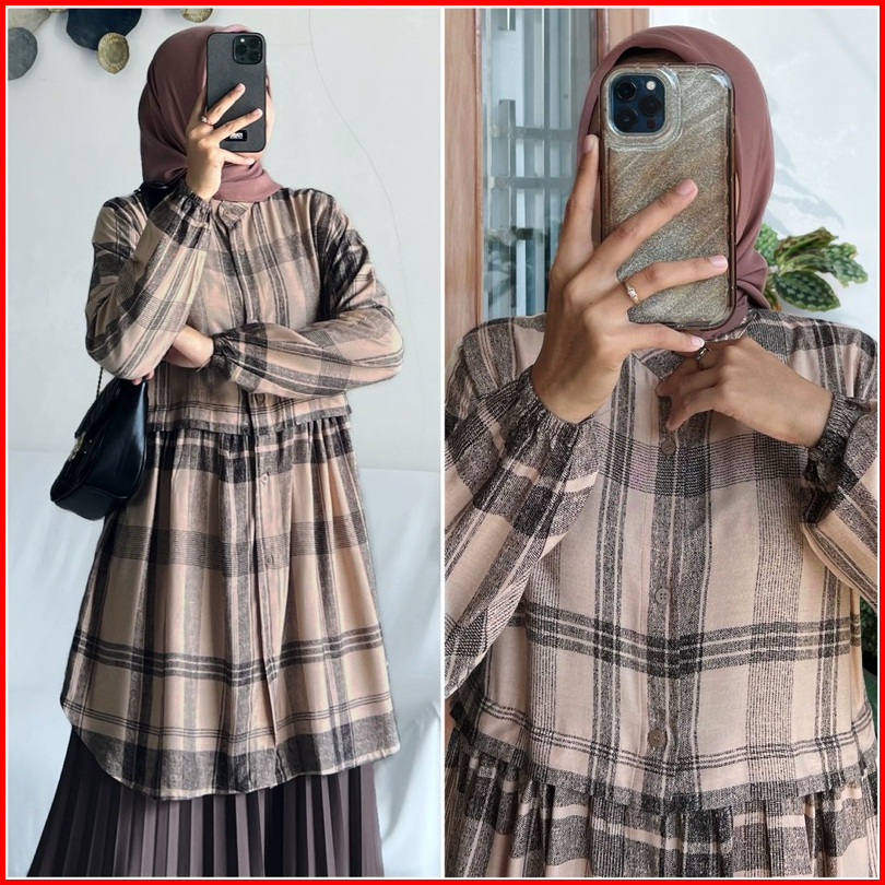 Vanela Blouse By Zalfa Outfit Baju Atasan Wanita Muslim Blouse Kerja Kuliah Basic Motif Rayon Premium Lengan Panjang Kar