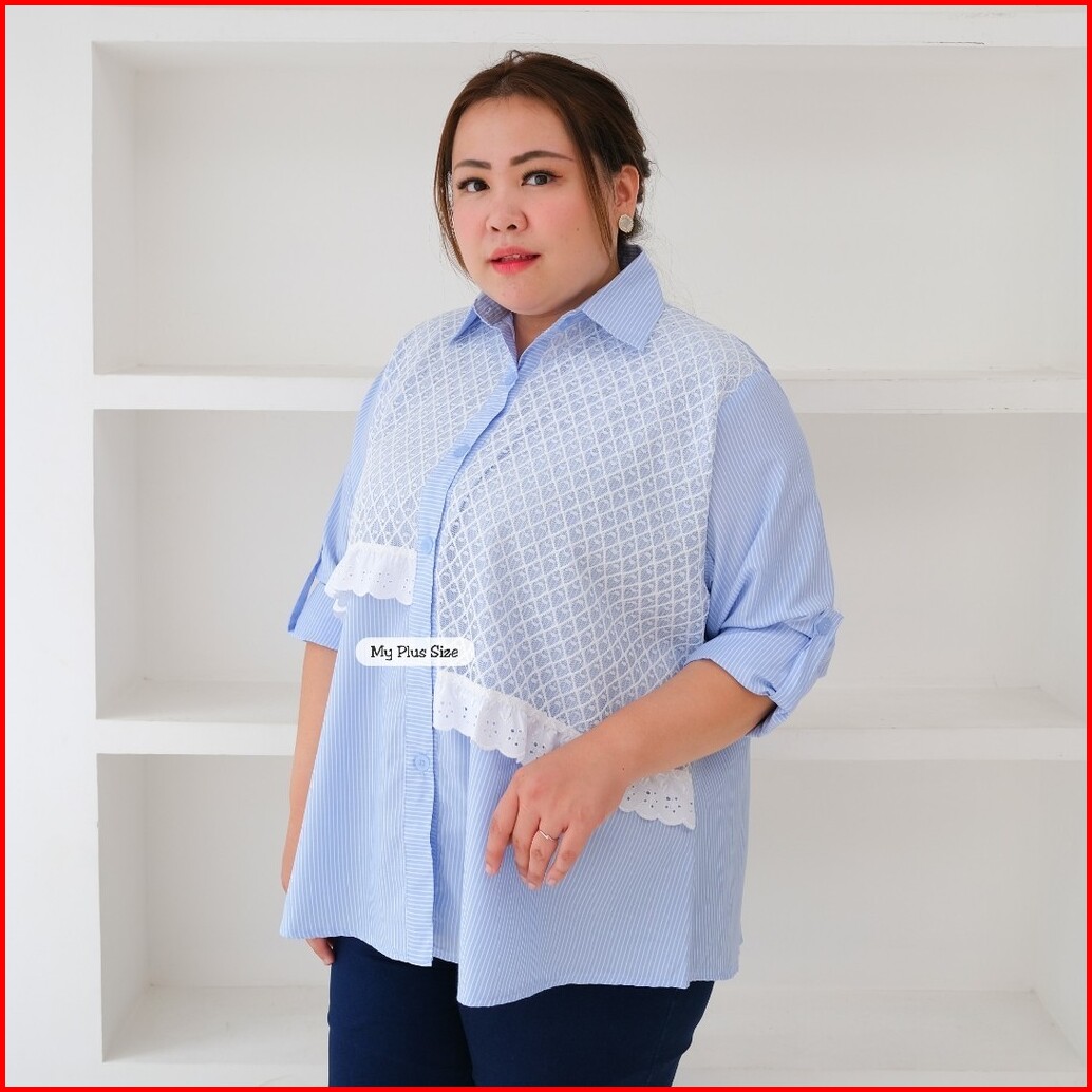 Kemeja Jumbo Wanita Katun Salur Mix Brukat 3814 Ld 125 135 145 Cm
