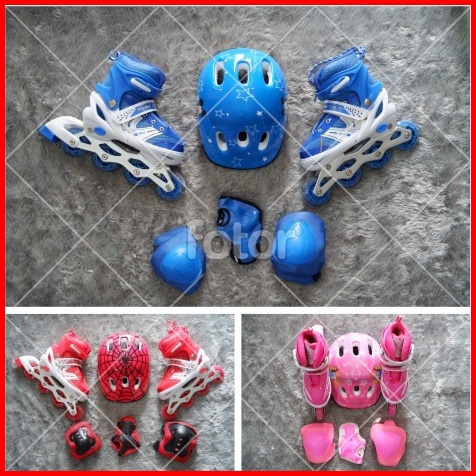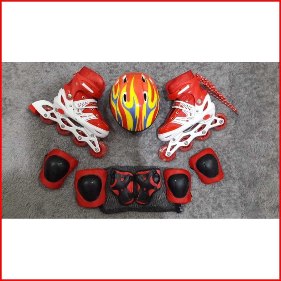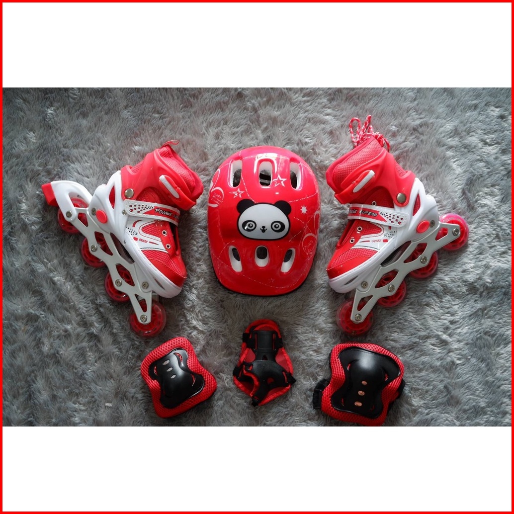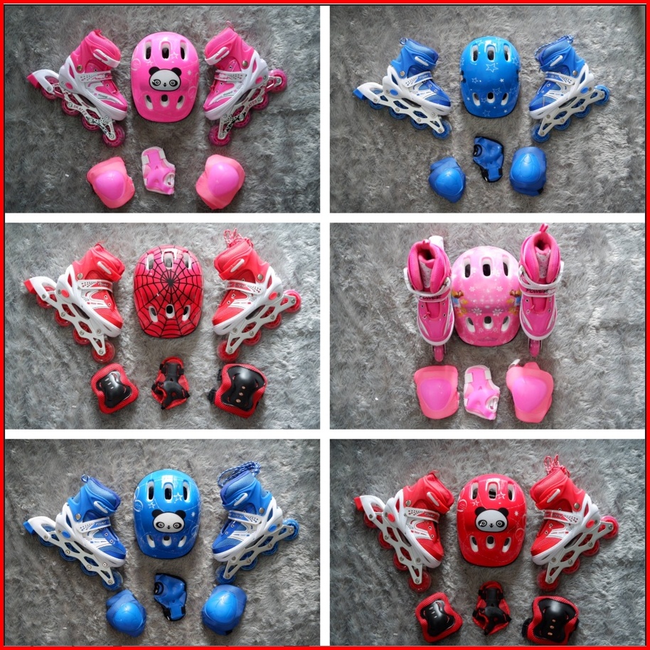 Terbaru Paket Sepatu Roda Anak Helm Deker Gambar Api Panda Dan Karakter