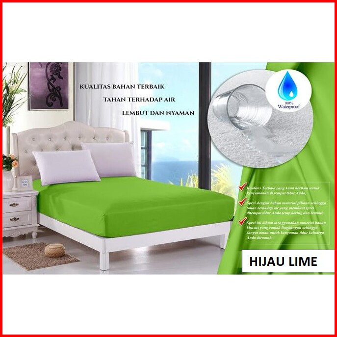 Sprei Waterproof Polos Warna Hijau Lime Seprei Anti Ompol Sprai Tahan Air Sprey Waterprof