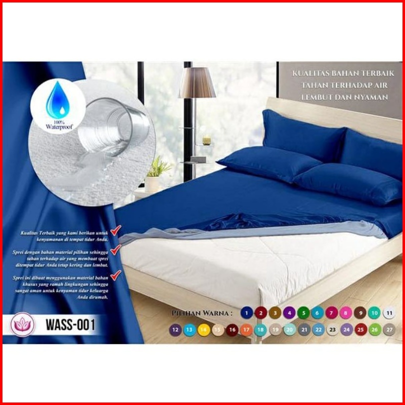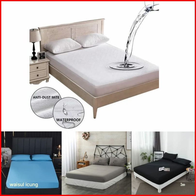 Sprei Waterproof Anti Ompol Anti Tahan Air Size Warna Polos 180x200 160x200 120x200 90x200 200x200 Seprei Adem Karet 4 S