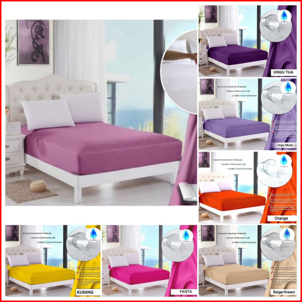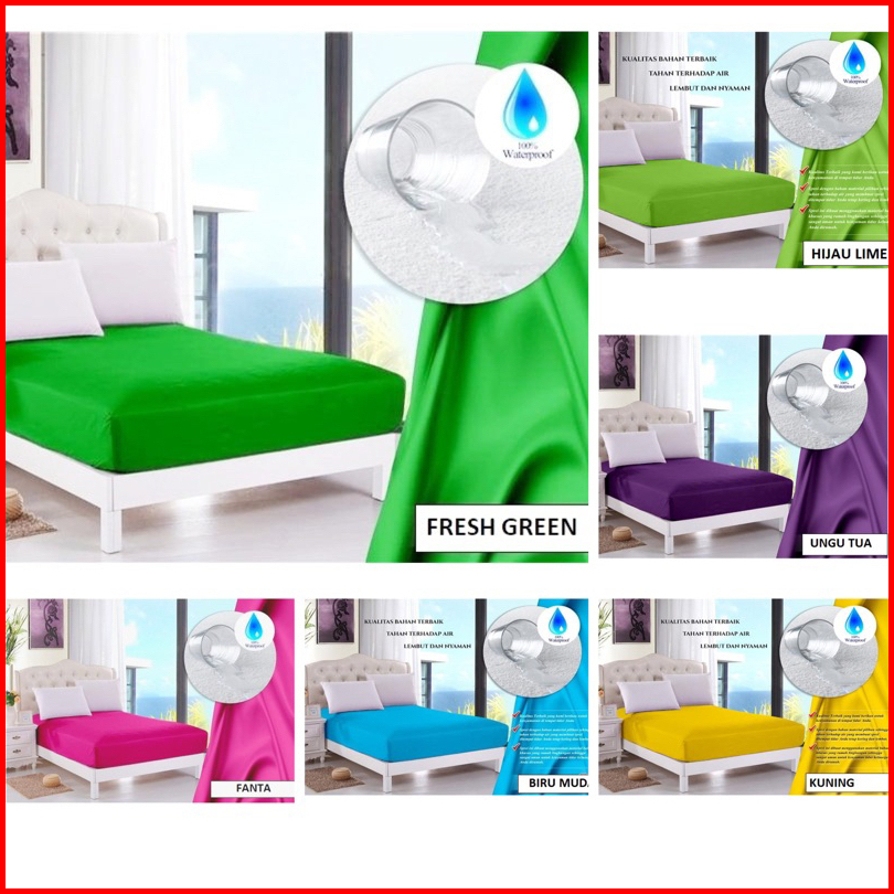 Sarung Busa Resleting Bahan Waterproof Anti Ompol Size 90x200x15 Aneka Warna Sprei Anti Air Set Murah