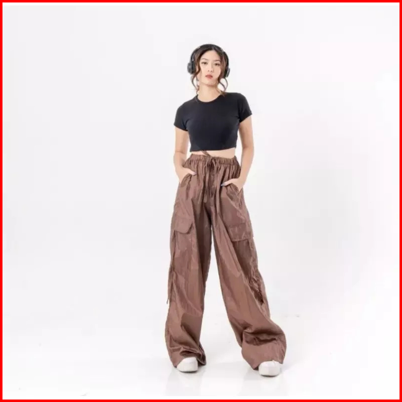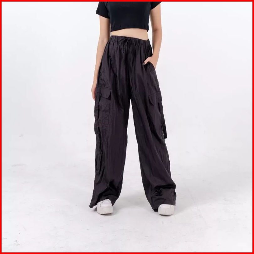 Celana Panjang Cargo Wanita Parasut Nilon Korean Look