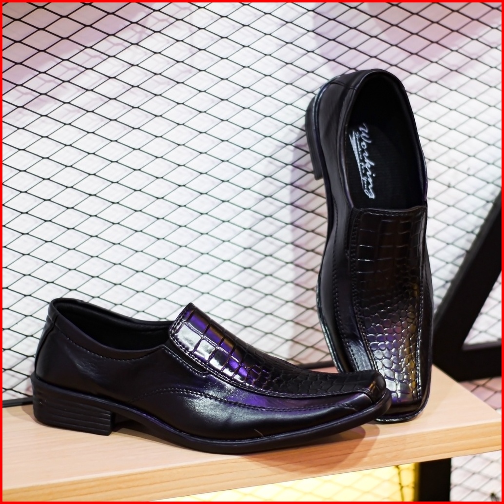 Working Sneakers For You Sepatu Pantofel Pria Motif Kulit Buaya Kode F-11 Size 39-43