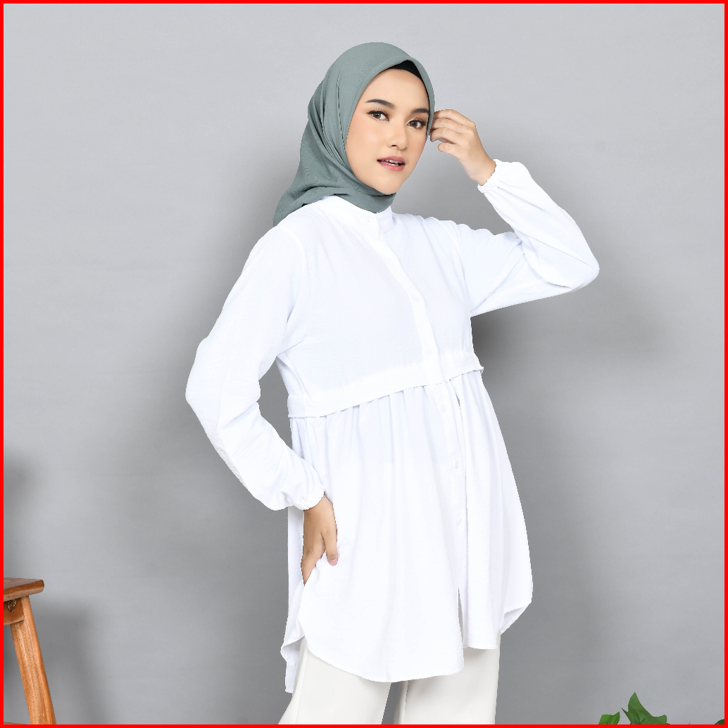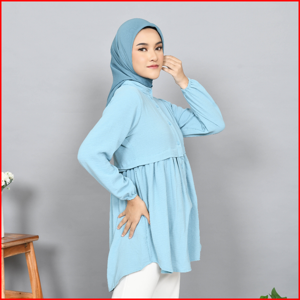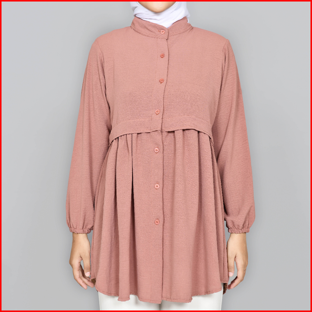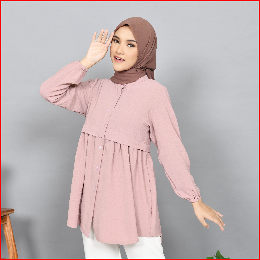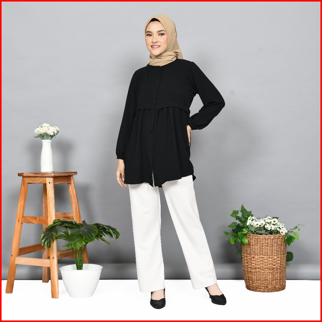 Baju Tunik Wanita Muslim Terbaru Bahan Cringkle Airflow Ful Kancing