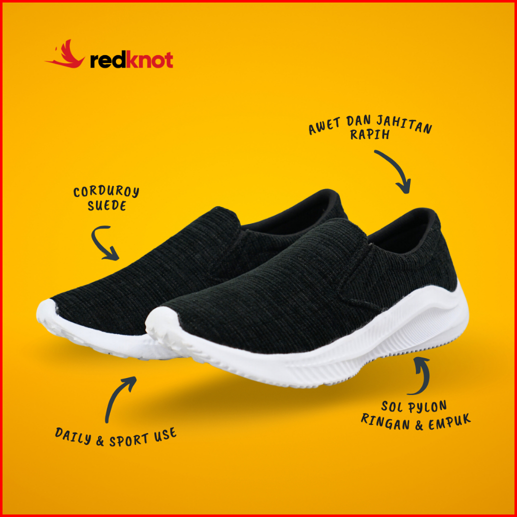 Redknot Barna Hitam - Sepatu Slip On Tanpa Tali Untuk Olahraga Jalan Santai Aktivitas Sehari Hari