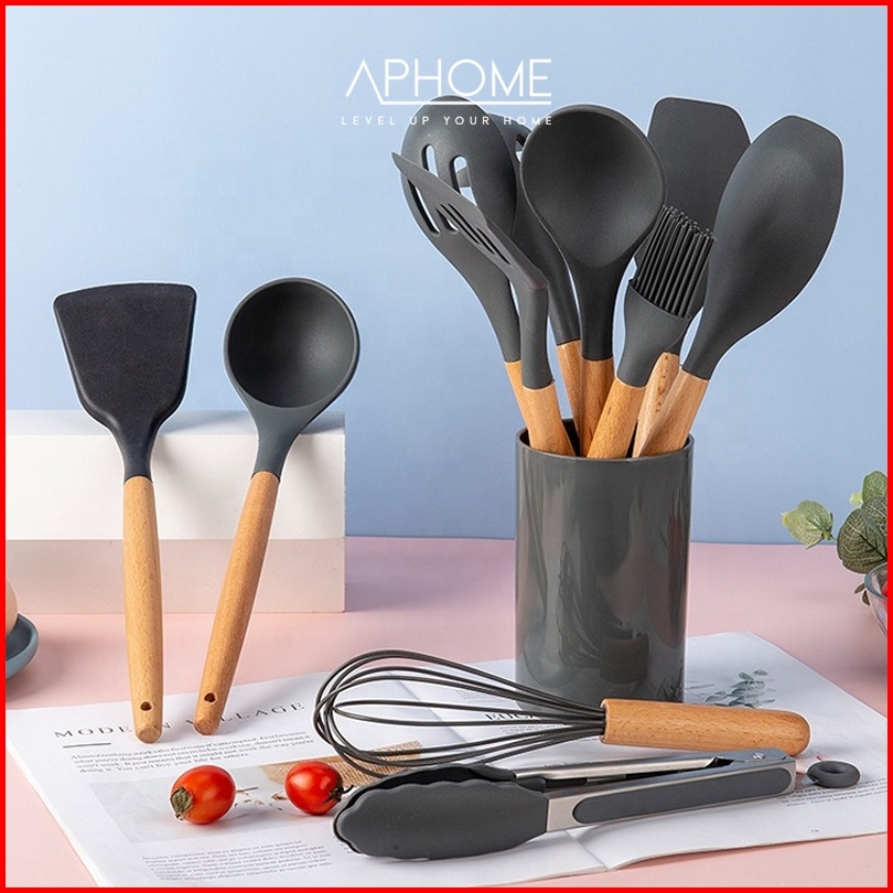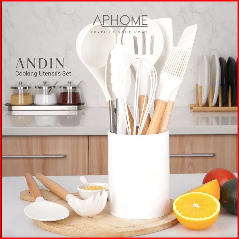 Aphome Alat Masak Silicone Dapur Paket Kitchen Utensils Set Dengan Wadah Bpa Free Dan Fda Approved Andin