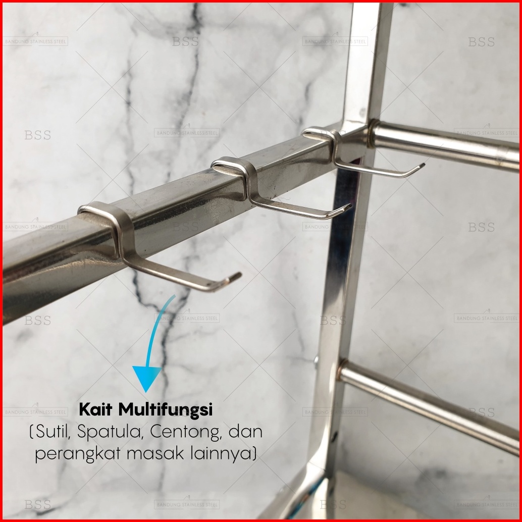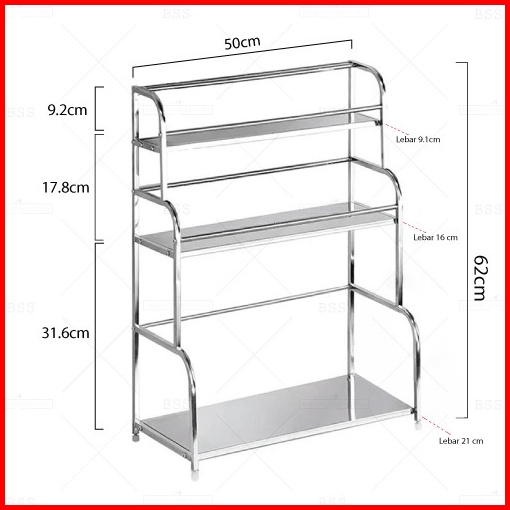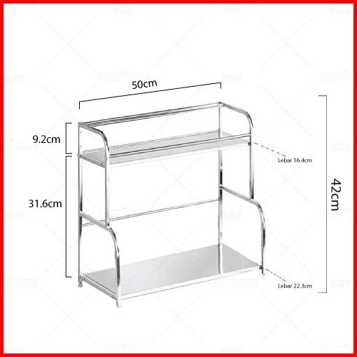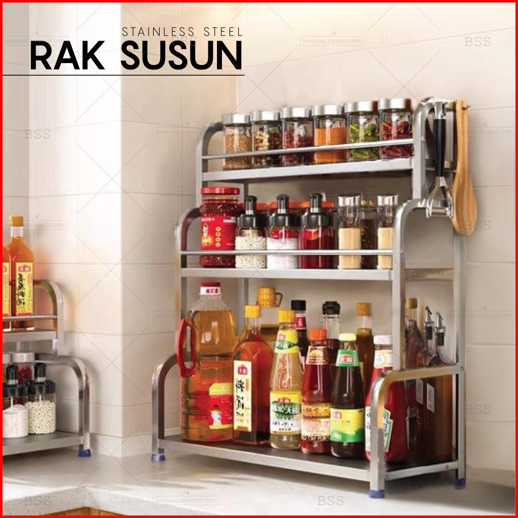 Rak Bumbu Masak Peralatan Dapur Stainless 40cm 50cm 2 3 Susun Multifungsi Serbaguna