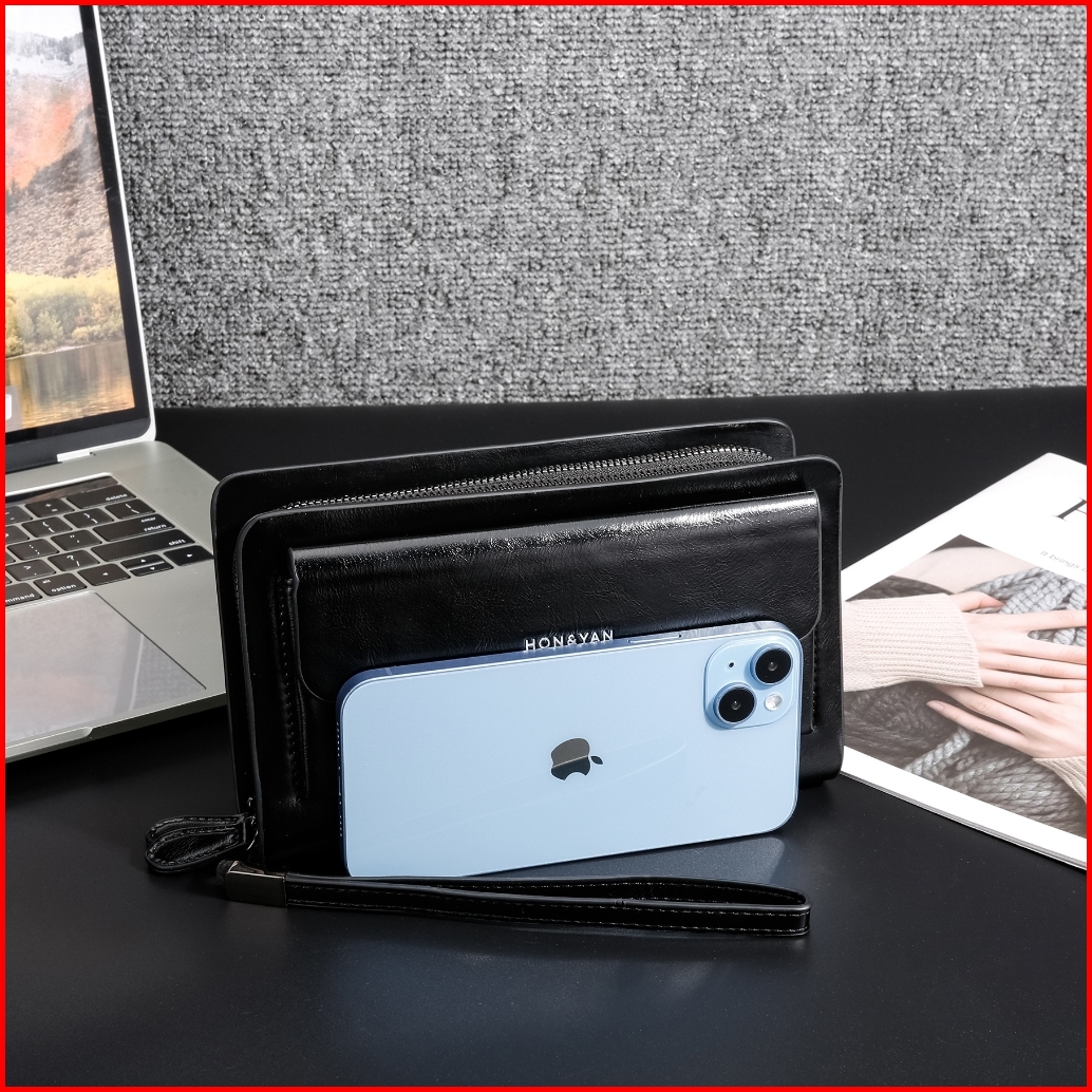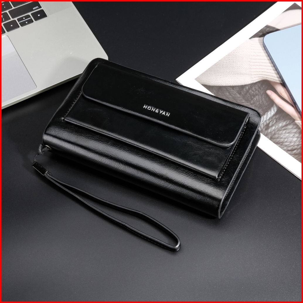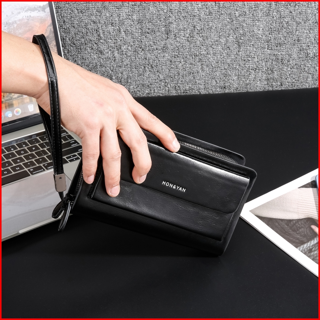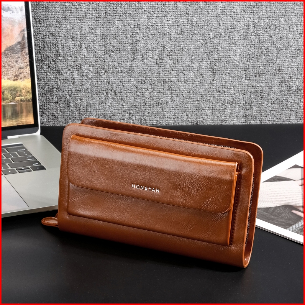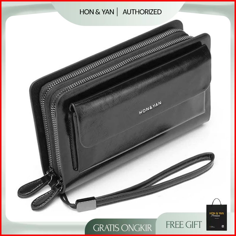 Honyan Dompet Pria Wesley Long Wallet 2 Zip 2 Ruang Dompet Panjang Tas Clutch Pria