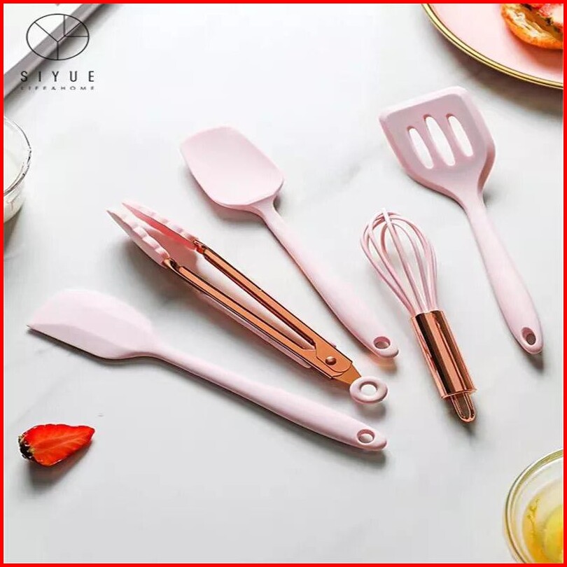 Silicone Kitchen Utensils Set Mini 5in1 Alat Masak Set Spatula Egg Beater Shovel Scraper Silikon