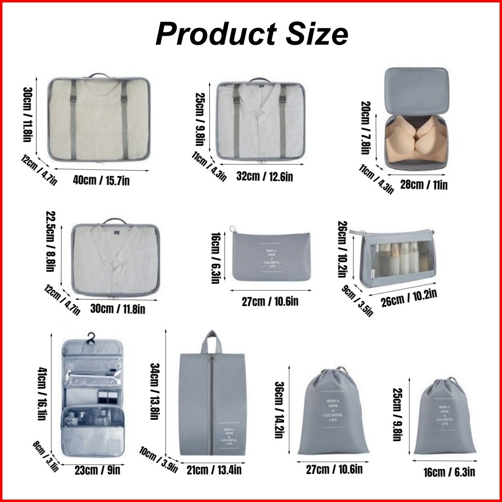10 In 1 Travel Bag Tas Travel Organizer Bag Pouch Set Storage Luggage Bag Tas Penyimpanan Travel Tas Travel Organizer Ko