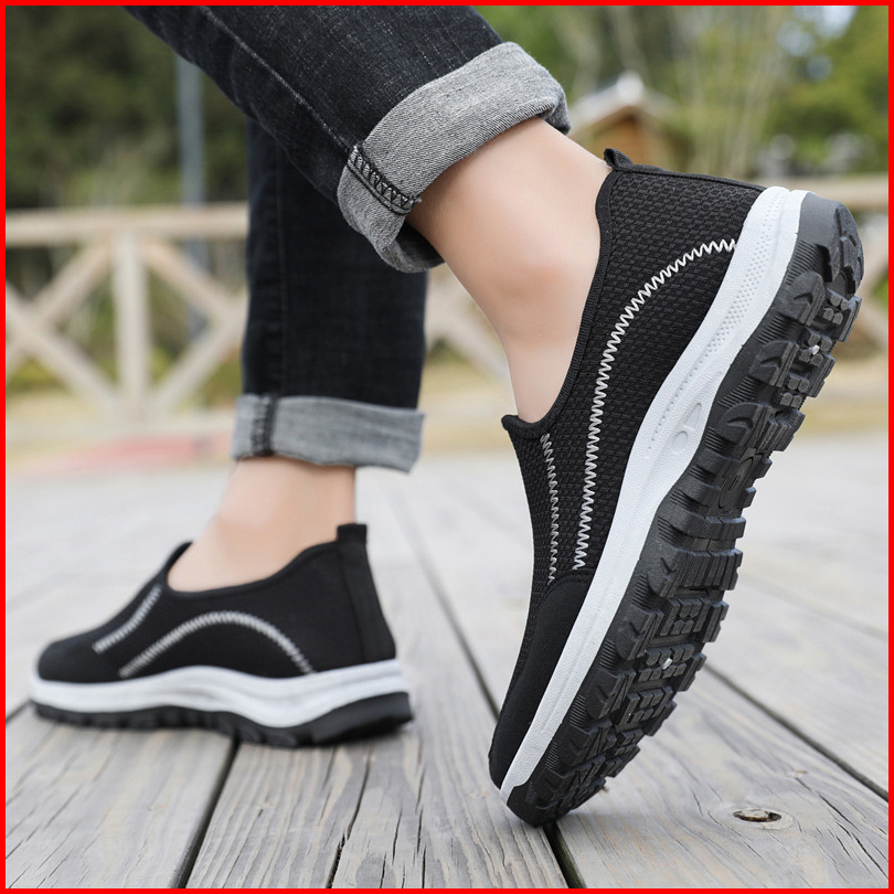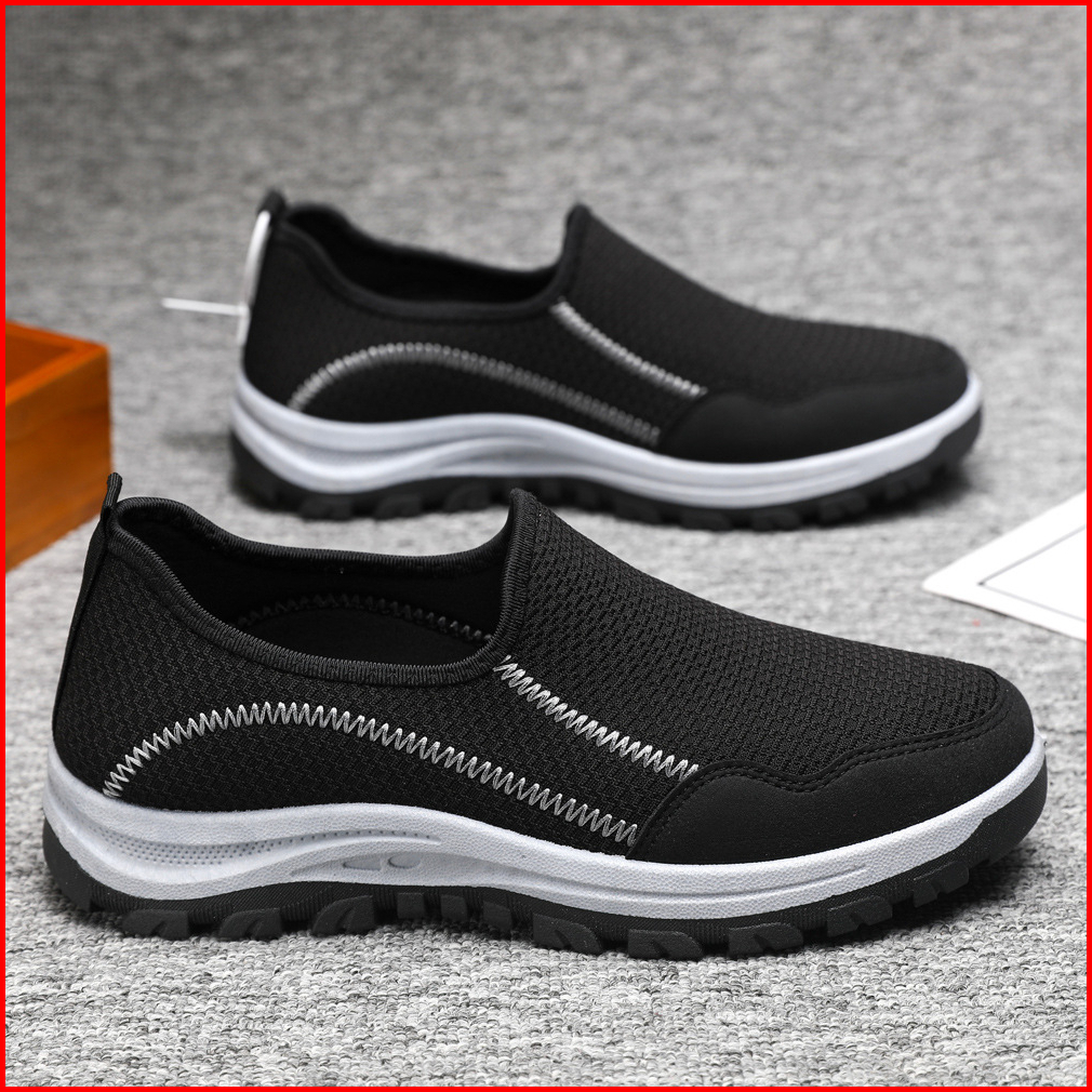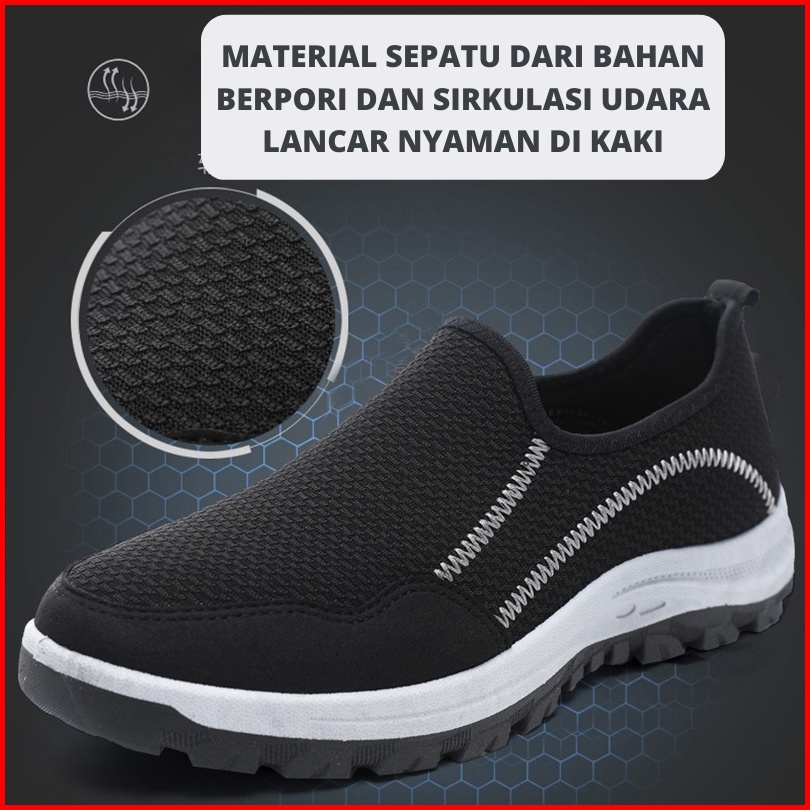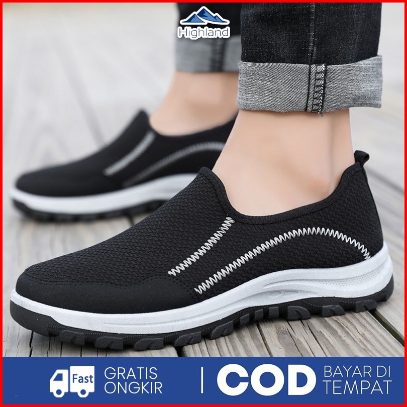 Highland Sepatu Slip On Pria Original Sneakers Slop Sepatu Kerja Casual Hitam Sepatu Kantor Mc603