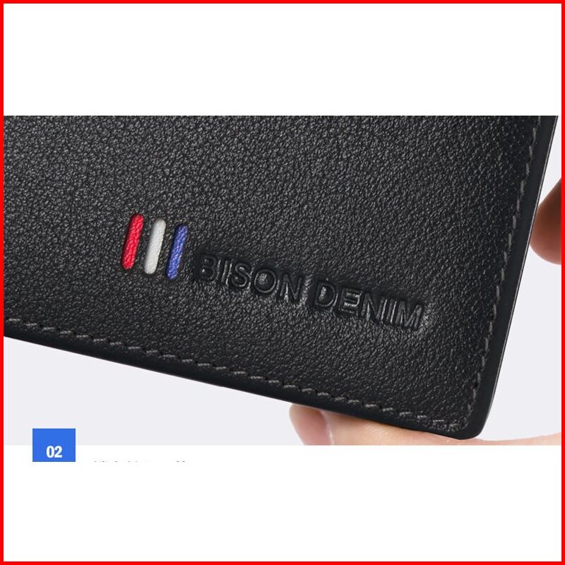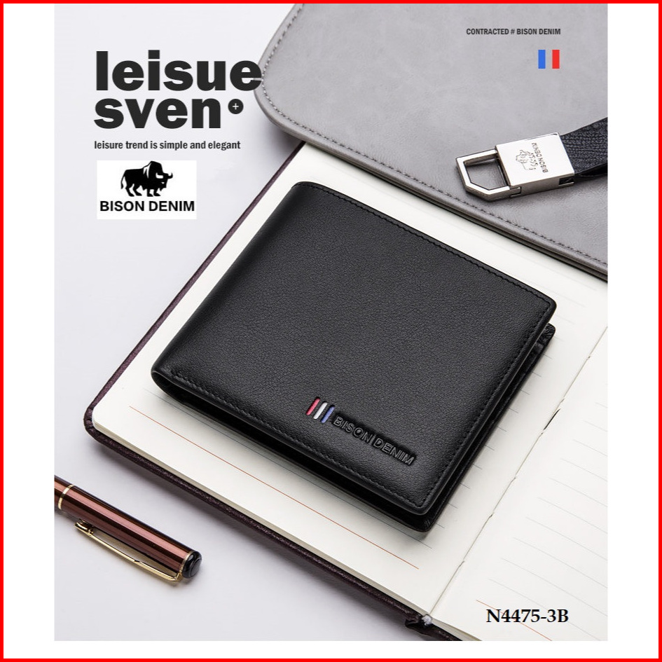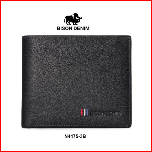 Bison Denim-dompet Pendek Pria Horizontal Bifold Wallet Kulit Sapi Asli N4475-3b