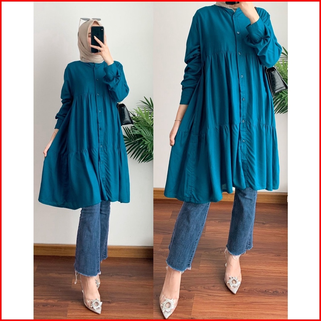 Popy Tunik Kancing Rempel Polos - Katun Rayon - Bahan Adem - Pakaian Wanita -