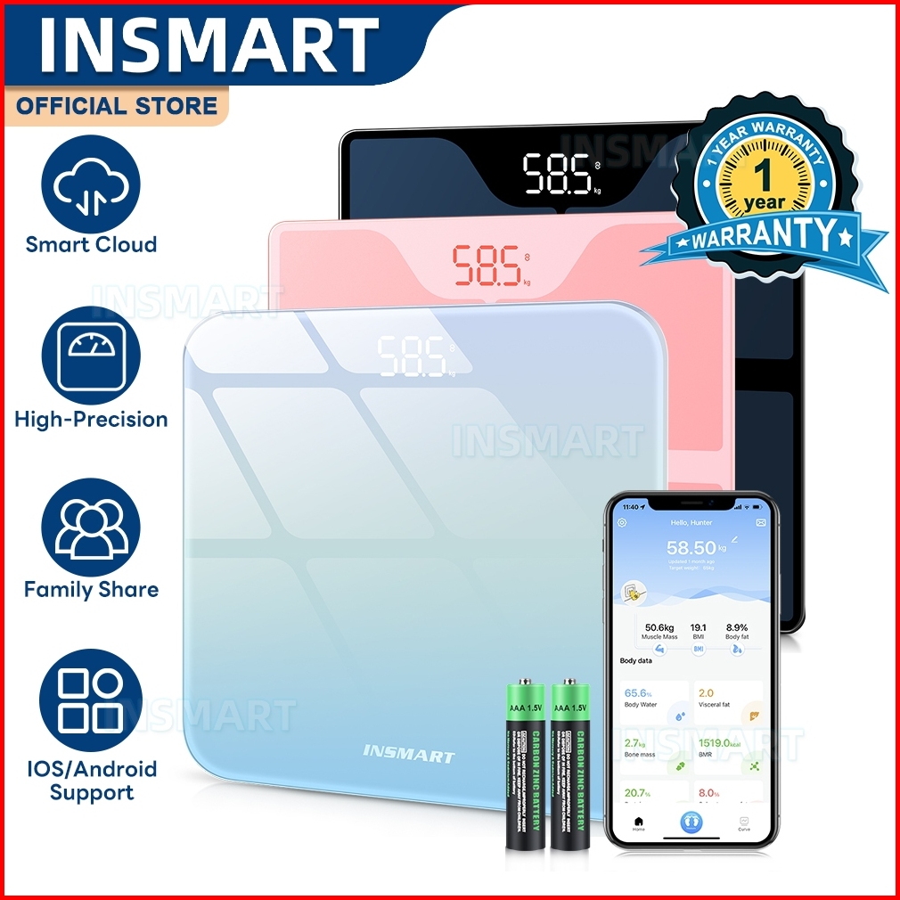 Insmart Timbangan Digital Timbangan Badan Digital Weighing Scale Human Body Fat Scale Smart Scale Aplikasi App Bluetooth