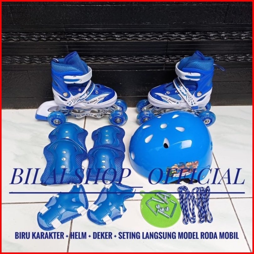 Sepatu Roda Anak Fullset Pengaman Sikut Lutut Tangan Dan Helm Model Mobil Bajaj Dan Sejajar