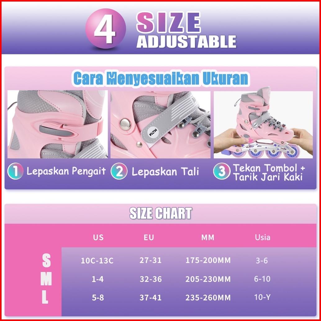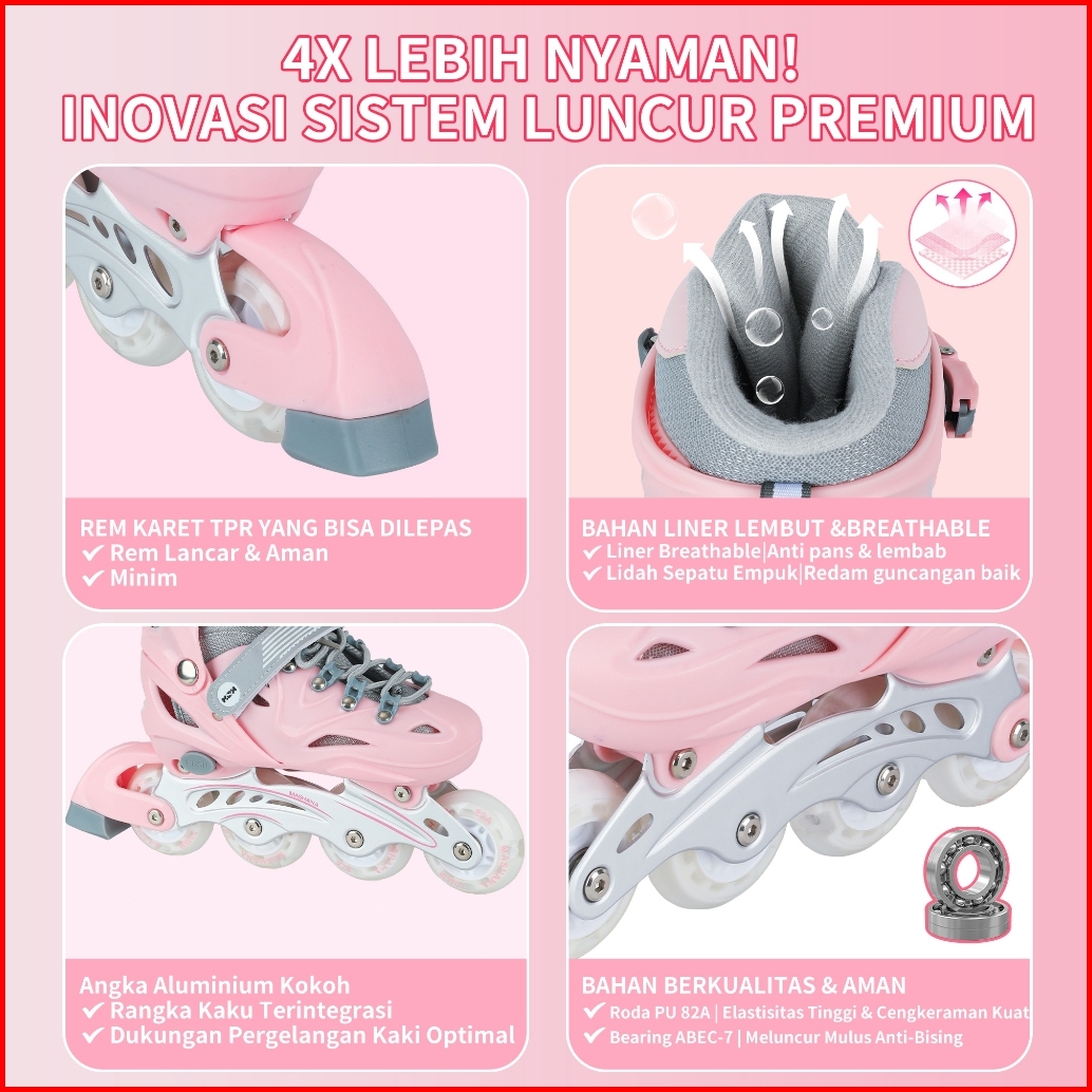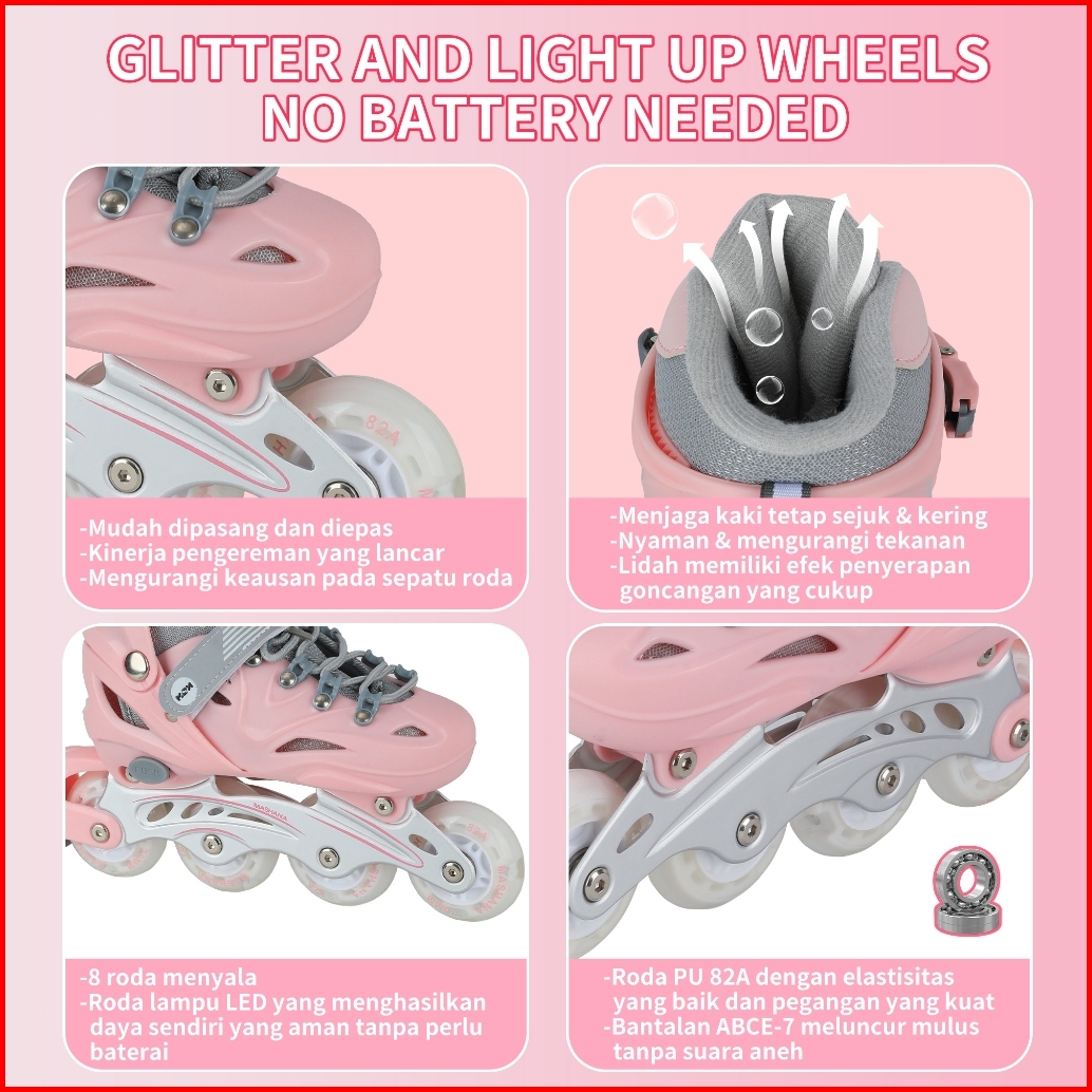 Ixce Sepatu Roda Anak Adjustable - Lampu Led Bisa Diatur Ukuran 28-32 Free Tas