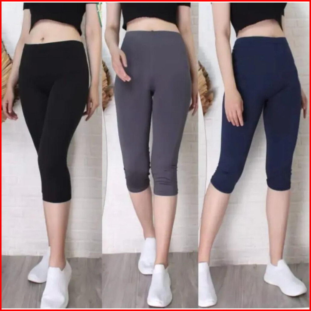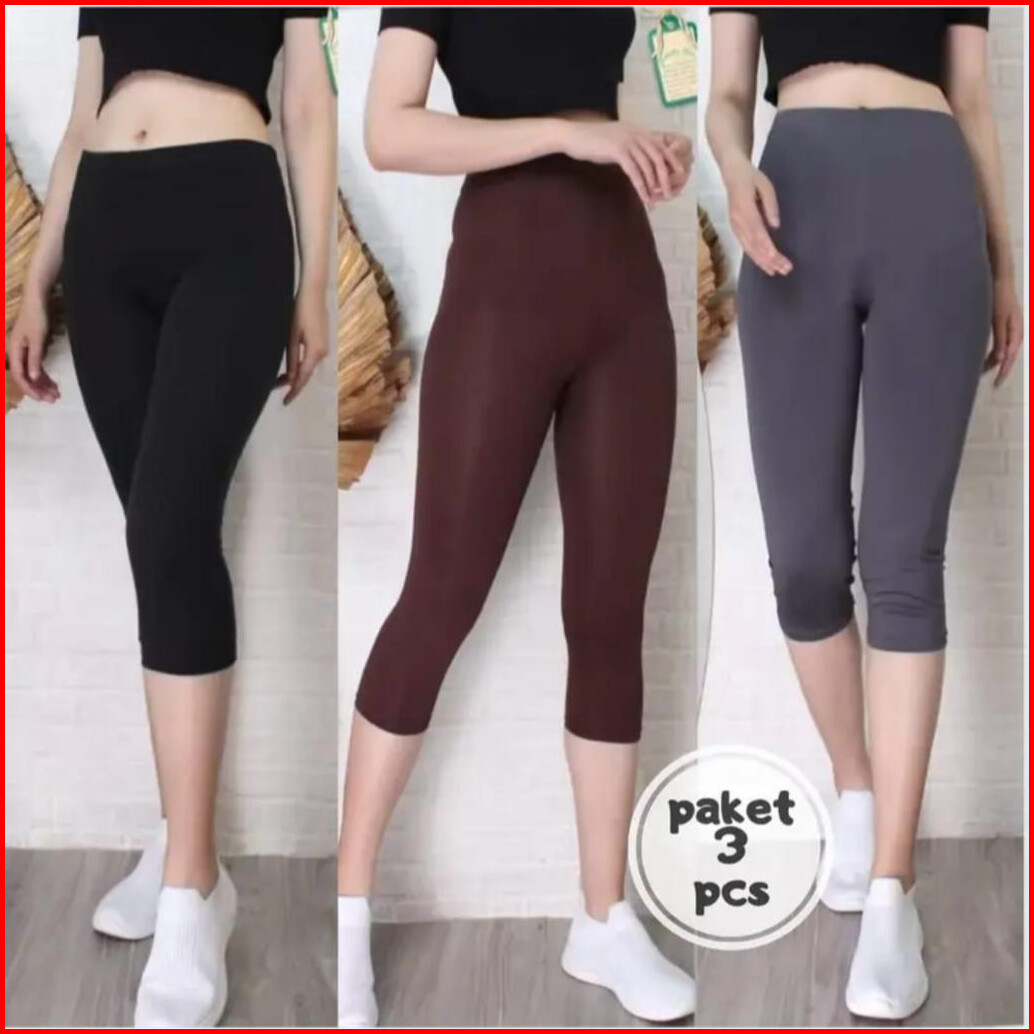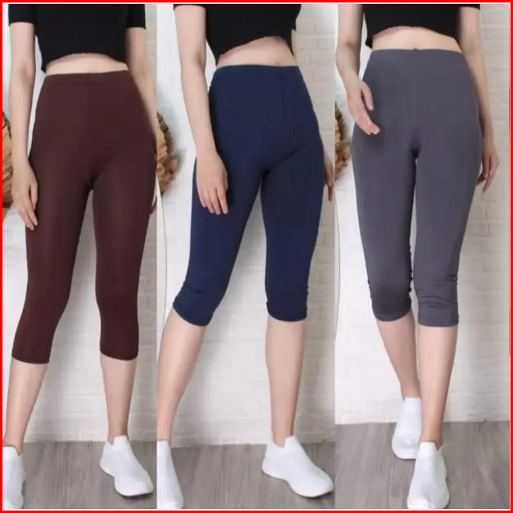 Sojun - 3pcs Leging 3 4 Wanita Dewasa Panjang Spandex Premium Legging Wanita Polos Std Jumbo
