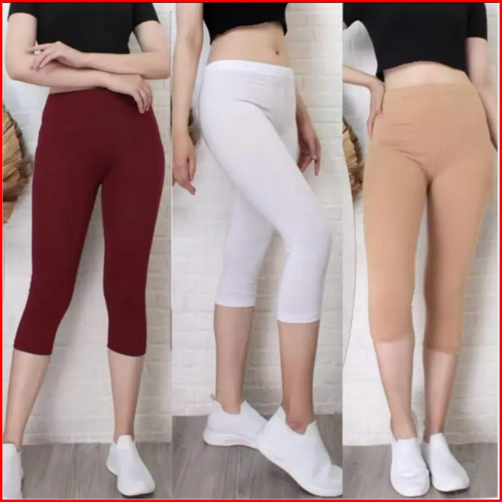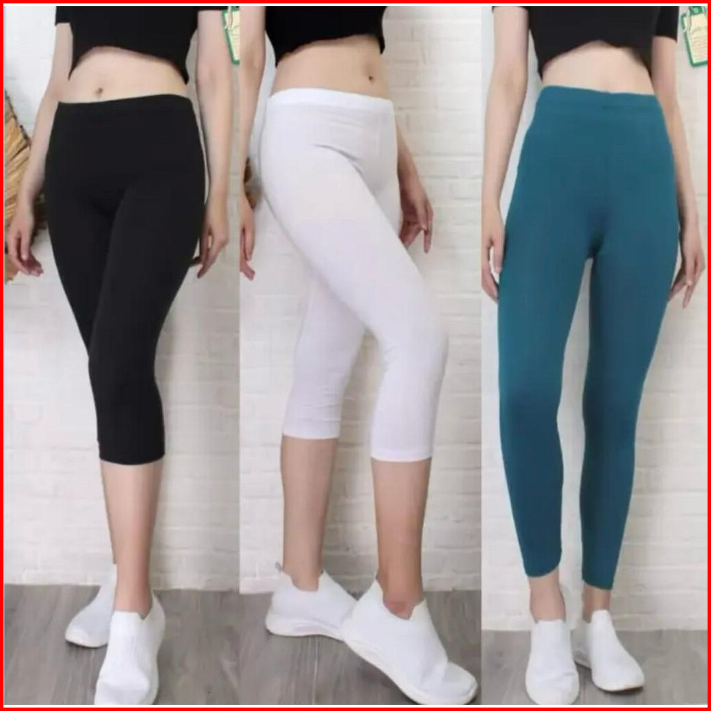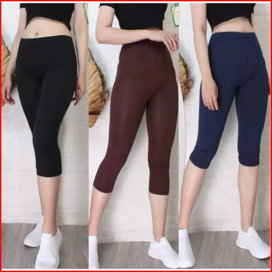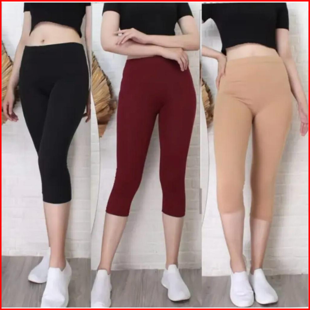 Sojun - 3pcs Leging 3 4 Wanita Dewasa Panjang Spandex Premium Legging Wanita Polos Std Jumbo