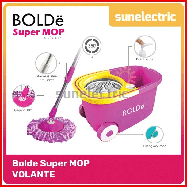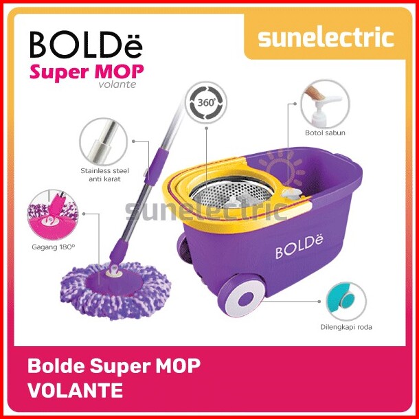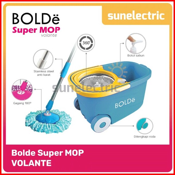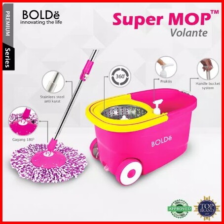 Bolde Super Mop Volante Stainless Steel Alat Pel Lantai Magic Mop Spin Mop Kapasitas 10 Liter