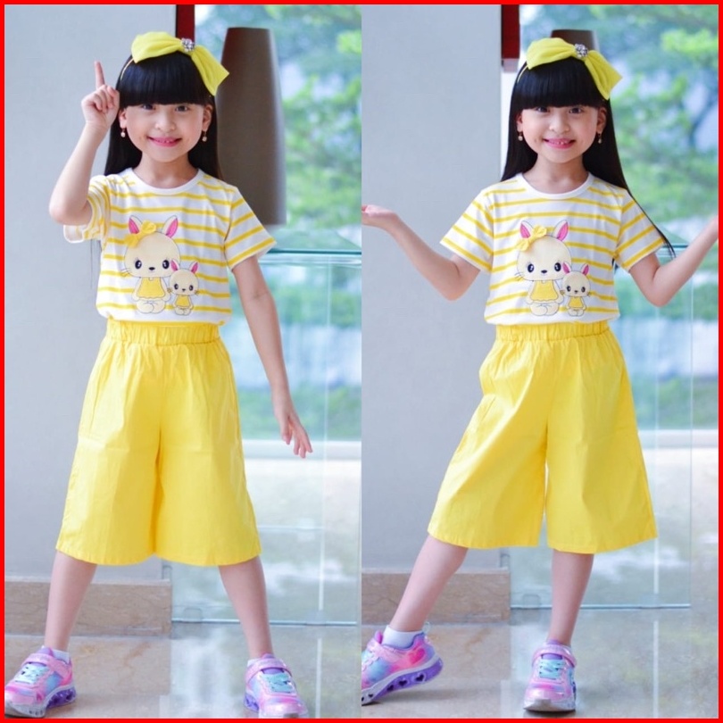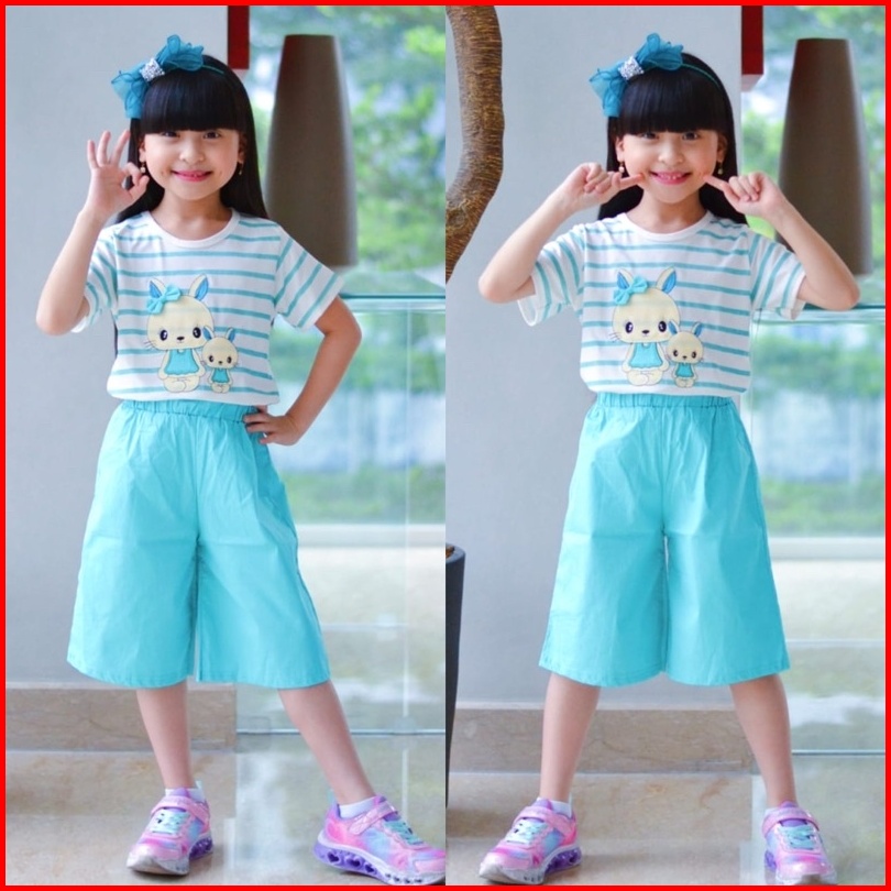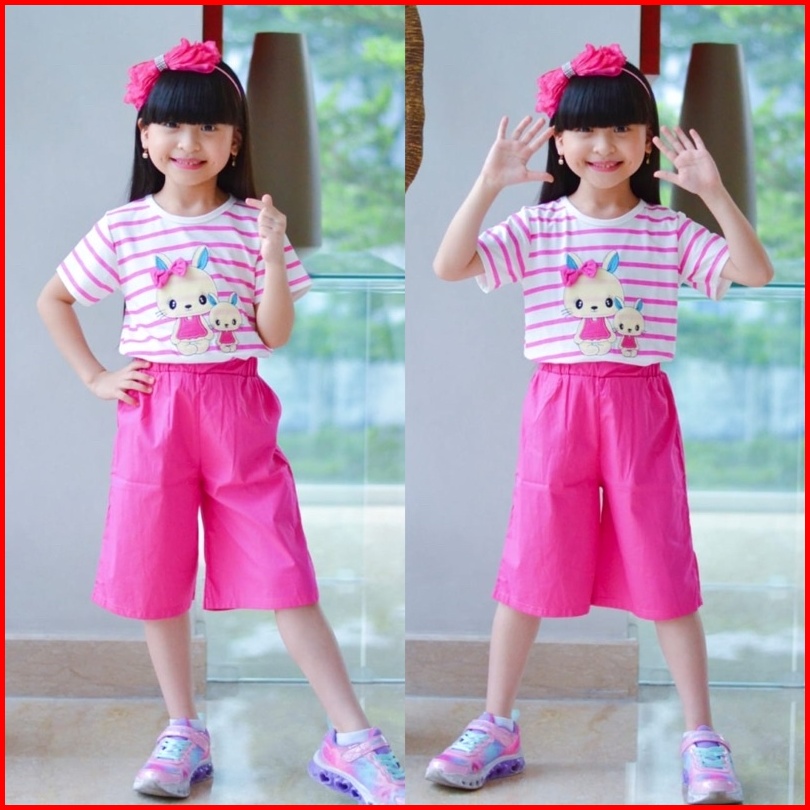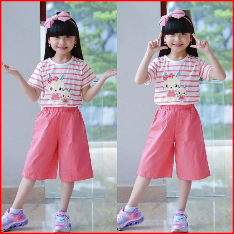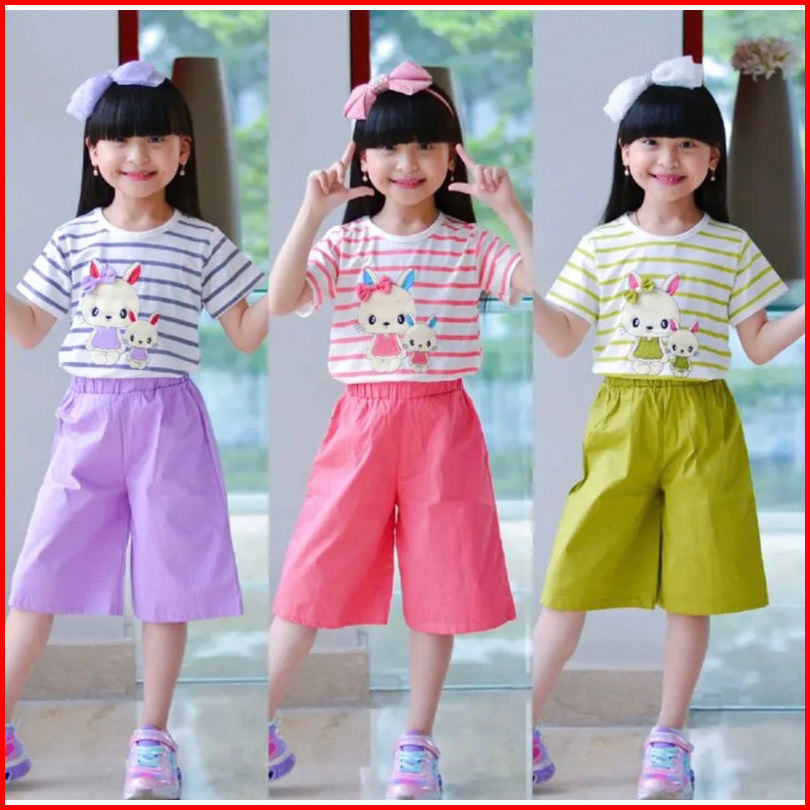 Setelan Celana Kulot Atasan Salur Terbaru Anak Perempuan Umur 4-11 Tahun