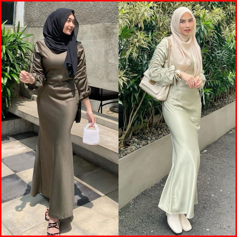 Gaun Darla Slik Dress Mermaid Lengan Serut Satin Pesta Kodangan Bridesmaid Polos Baju Lebaran