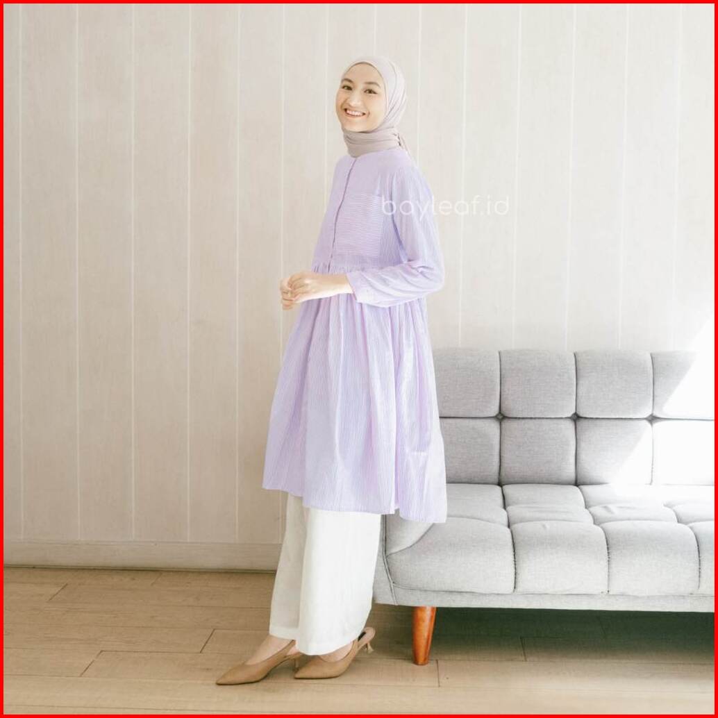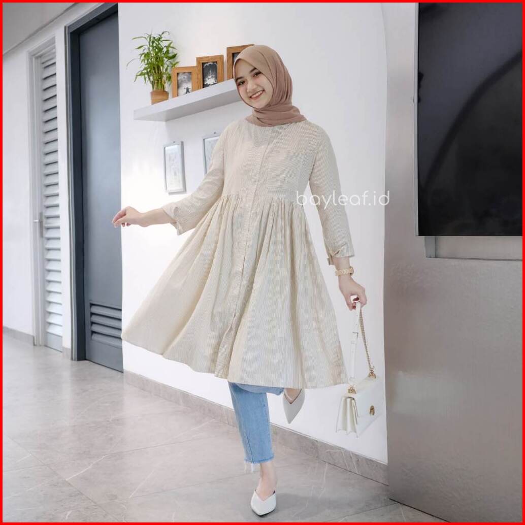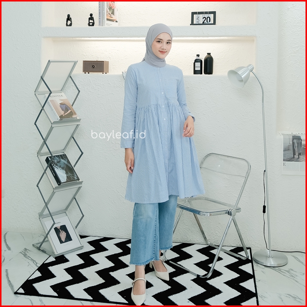 Bayleaf.id Jihan Tunik Big Size Striped Katun Lengan Panjang Atasan Tunik Wanita Motif Garis