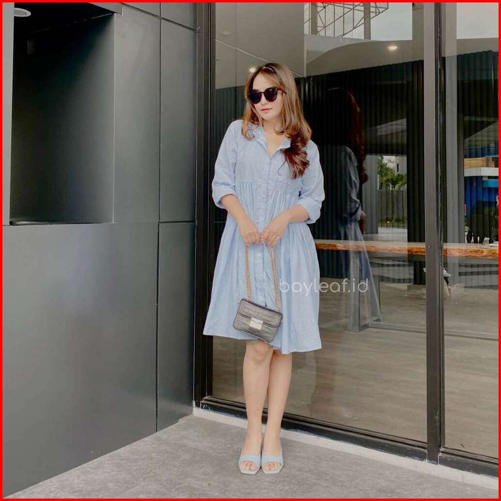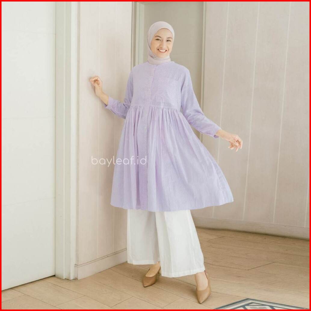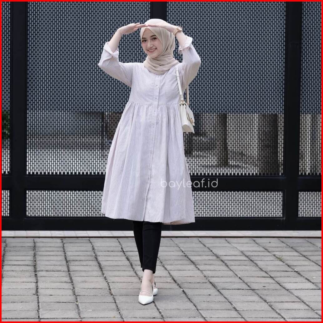 Bayleaf.id Jihan Tunik Big Size Striped Katun Lengan Panjang Atasan Tunik Wanita Motif Garis