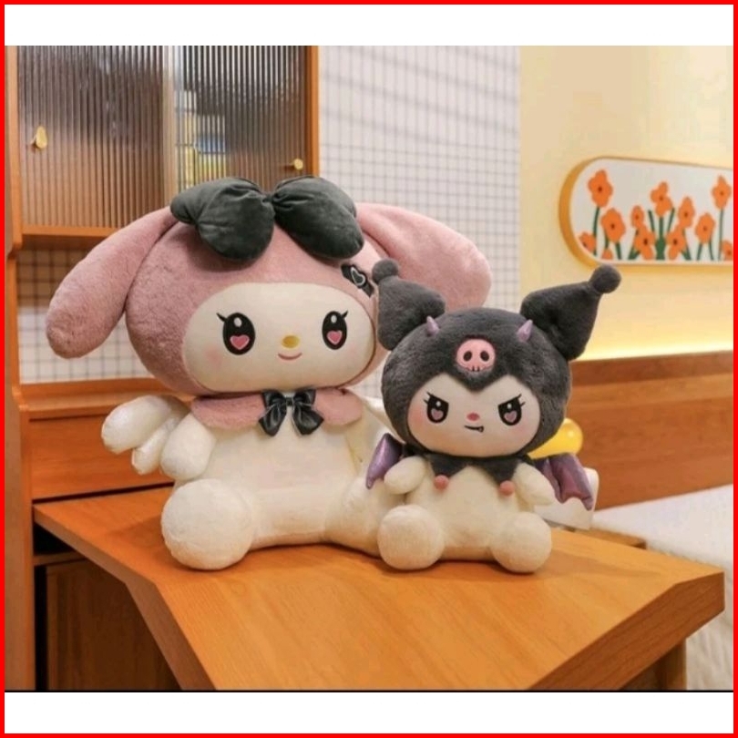 35cm Boneka Mainan Anak Baru Sanrio Kuromi Melody High Quality Kartun Kuromi Melody Bahan Plush