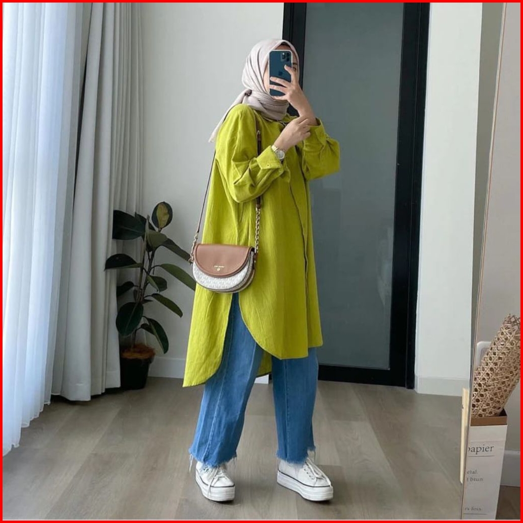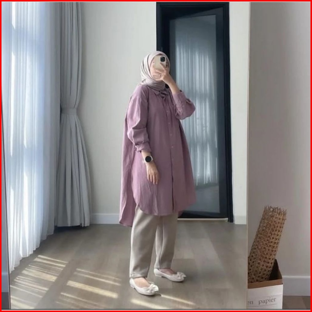 Kemeja Long Tunik Katun Linen - Tunik Wanita Polos Standar Dan Jumbo Terbaru Kekinian Bahan Katun Linen Simpel Elegan Be