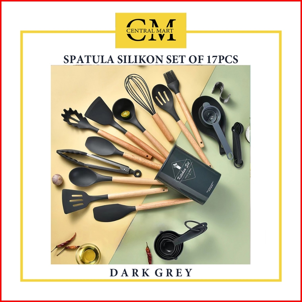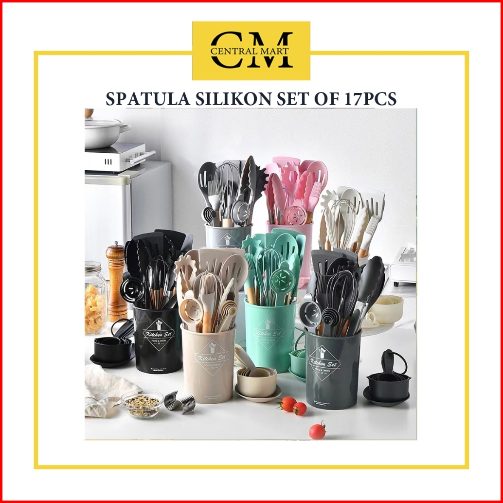 Spatula Silikon Set 17pcs Kitchen Set Spatula Wadah Bulat Kotak Sodet Alat Masak Sutil Dapur