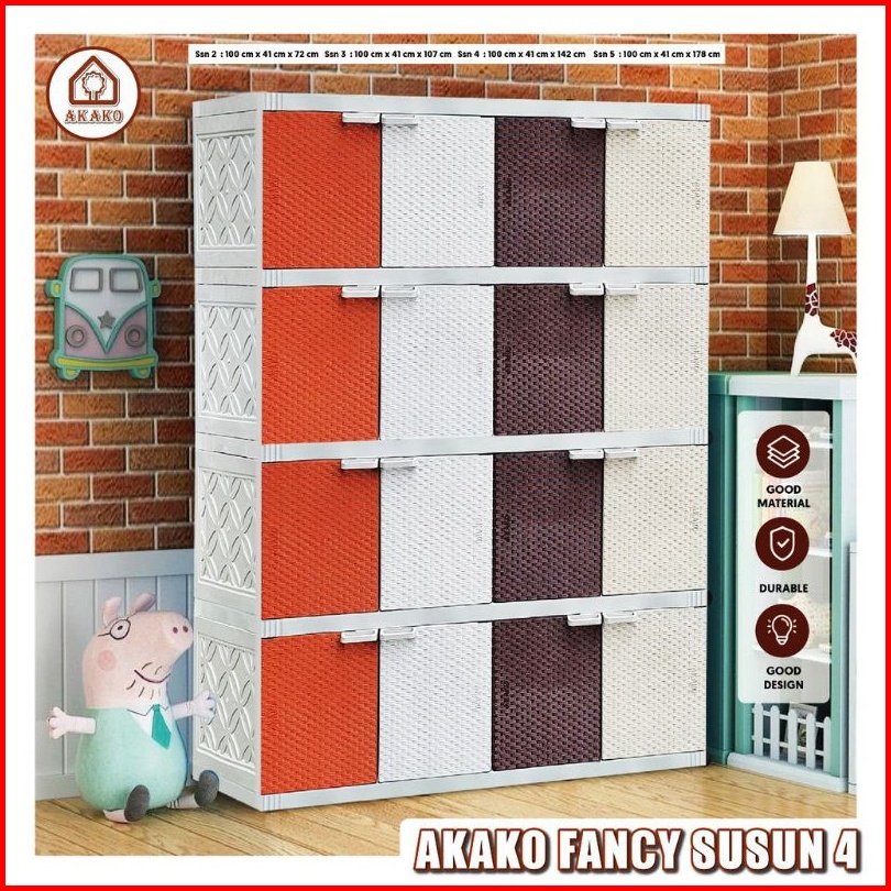Akako - Lemari Pakaian Plastik Jumbo Akako Fancy 4 Pintu Rotan Susun 2 3 4 Dan 5