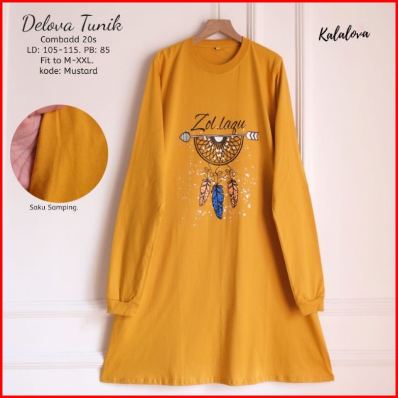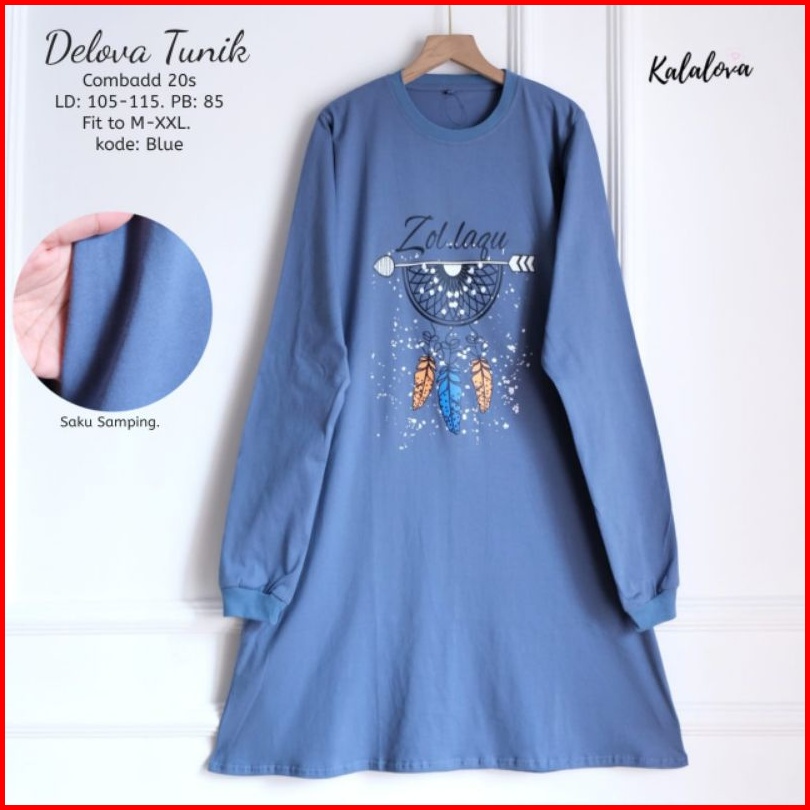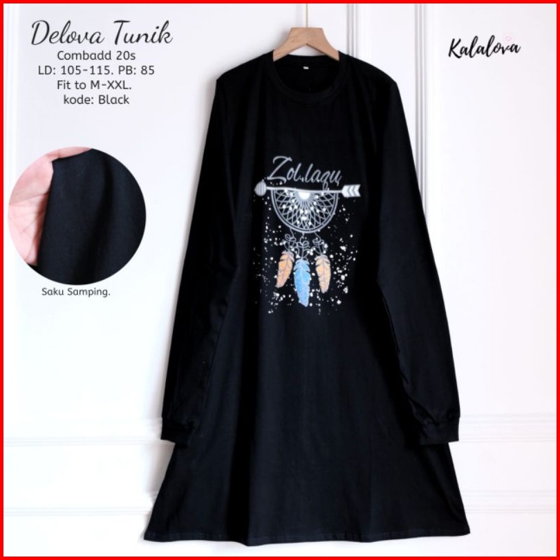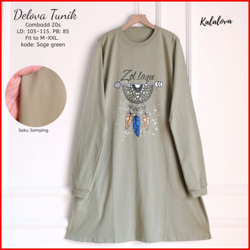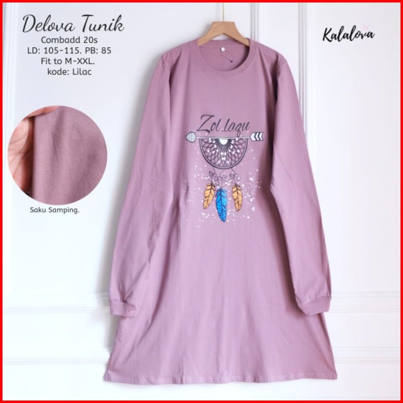 Delova Tunik Sablon Printing Kaos Combad Kalalova.tunik Lengan Panjang Cantik Anggun Dan Elegan