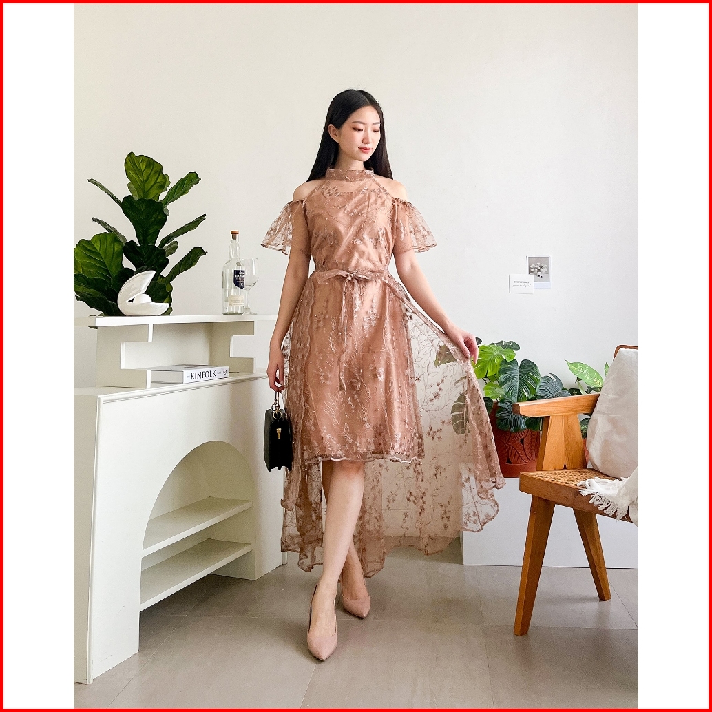 Dress Charity M L Xl Dress Pesta Kondangan Natal Brokat Tile Simple Elegan Mewah Gaun Formal Terbaru