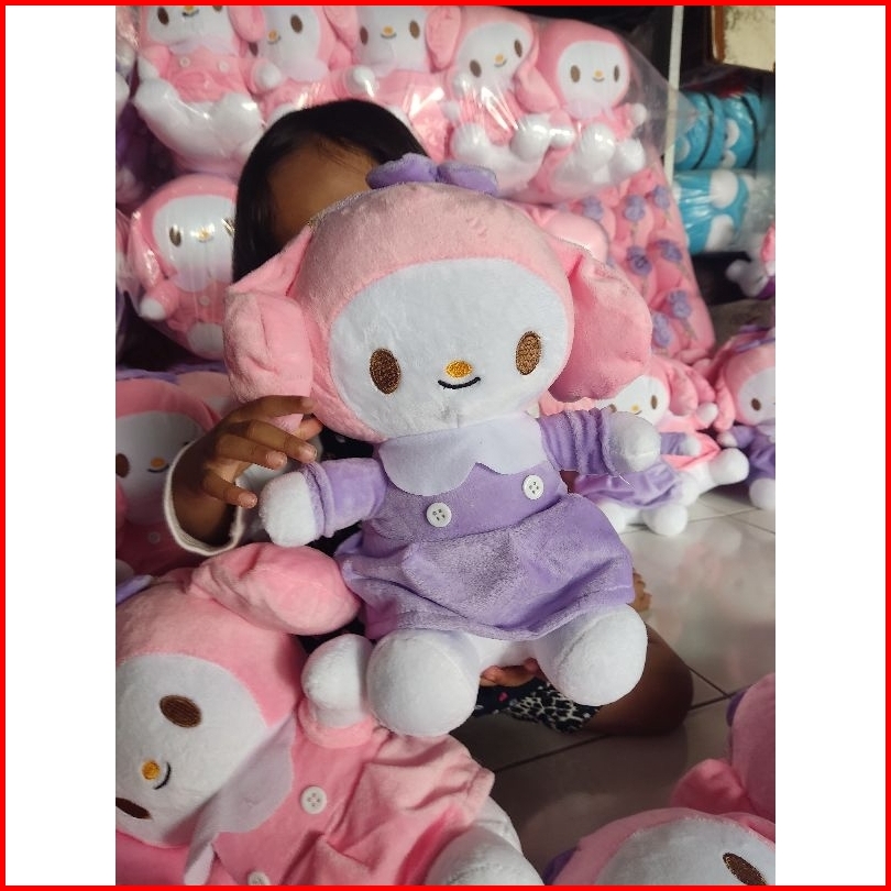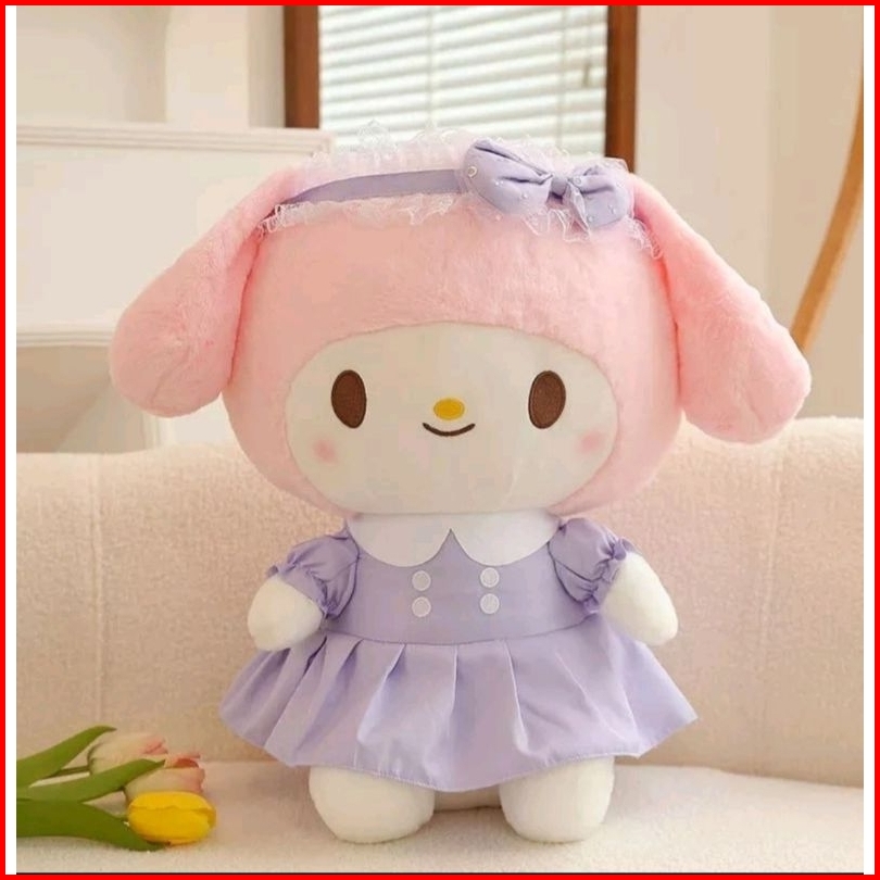 Boneka Mainan Anak Sanrio Magical Kuromi Melody Rok Plush 40 Cm Baju Warna Ungu Dan Baju Warna Pink