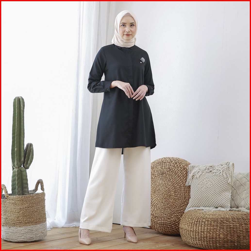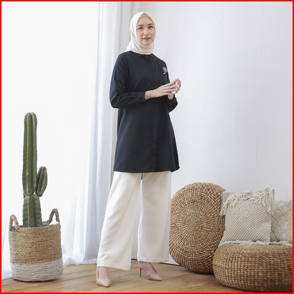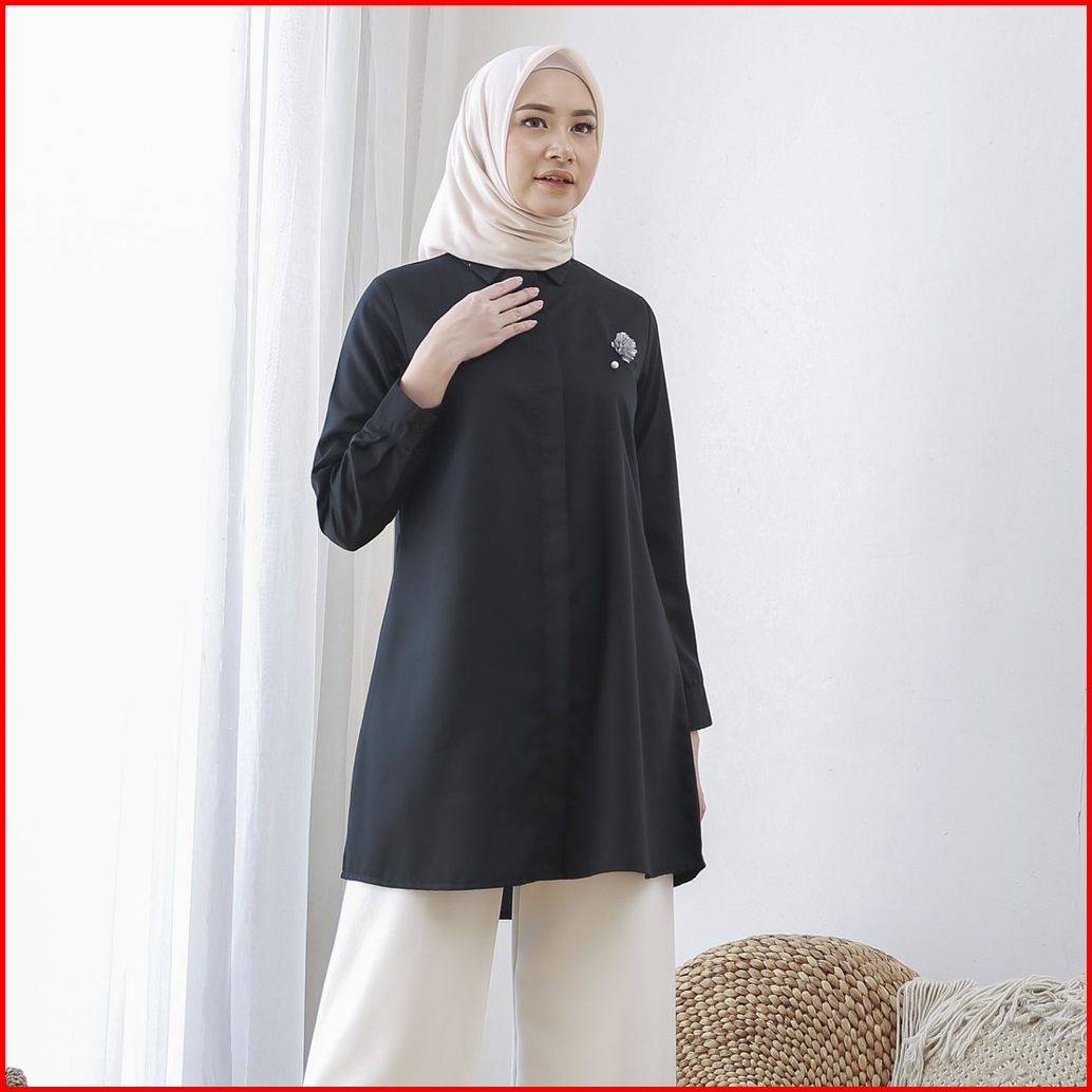 Wulfi Day To Day Kemeja Tunik Hitam Toyobo Fenomenal Ukuran Komplit Black