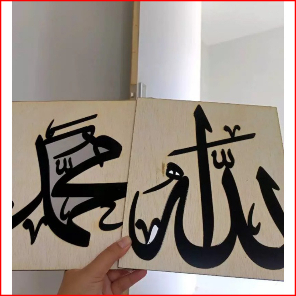 Kreasikayukuu Kaligrafi Allah Muhammad T20cm Hiasan Dinding Islami Bahan Kayu Plywood 5mm